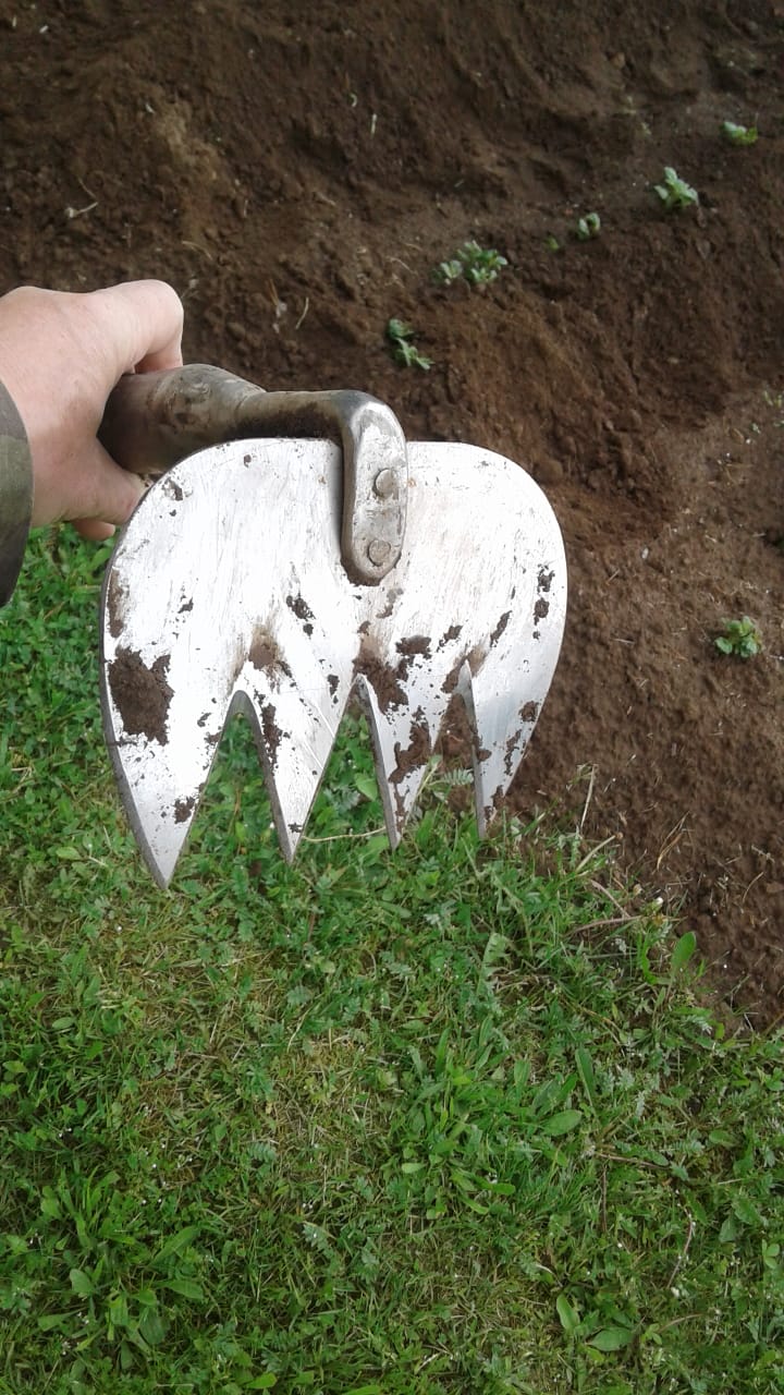 Кстати, когда выкапывал Вегу, клубни были, но размером с горошину. Для примера, у Коломбо на этот момент с куриное яйцо, их уже подкапываем на еду.