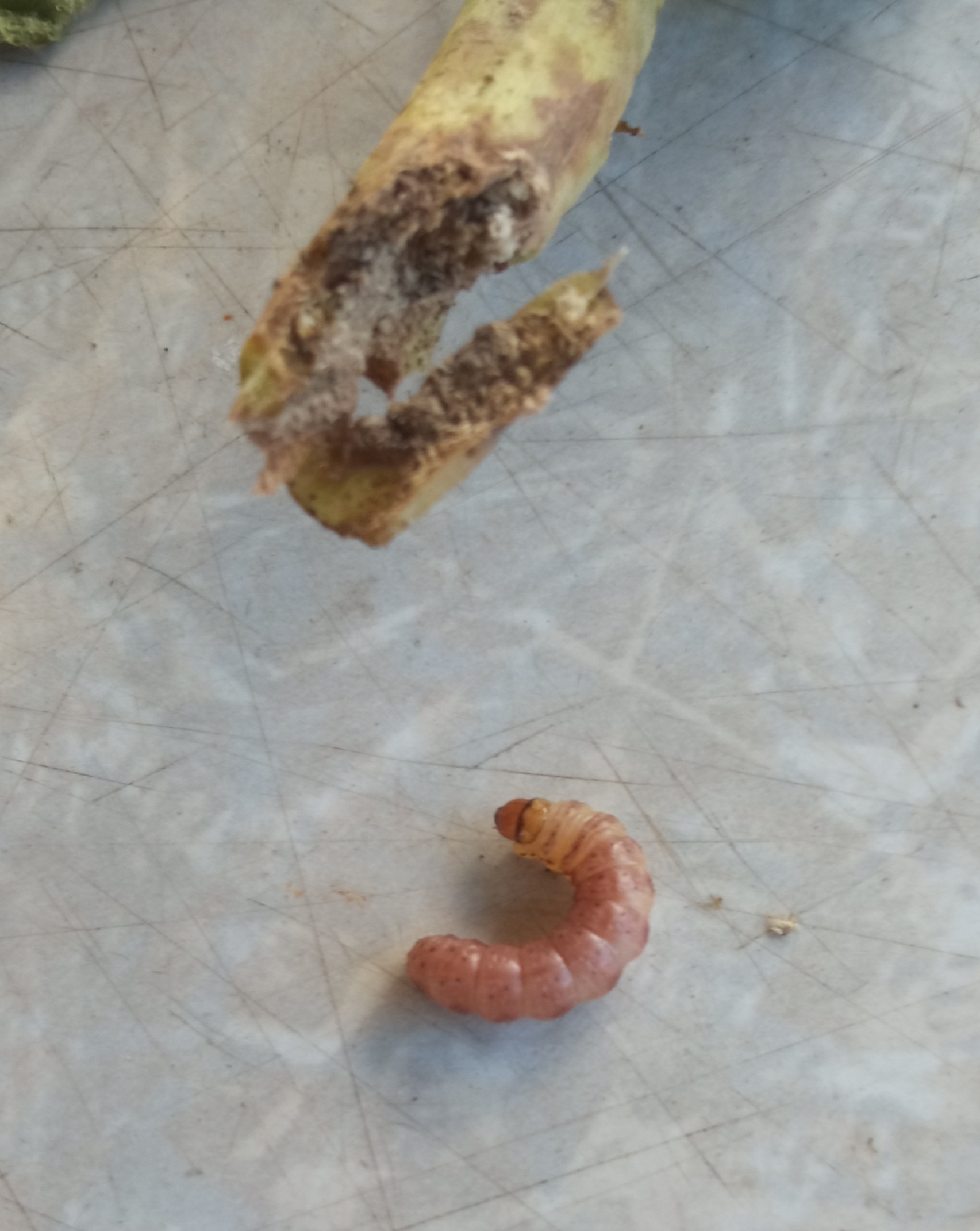 Совка. Достал из стебля. Ход шёл в глубину корня.