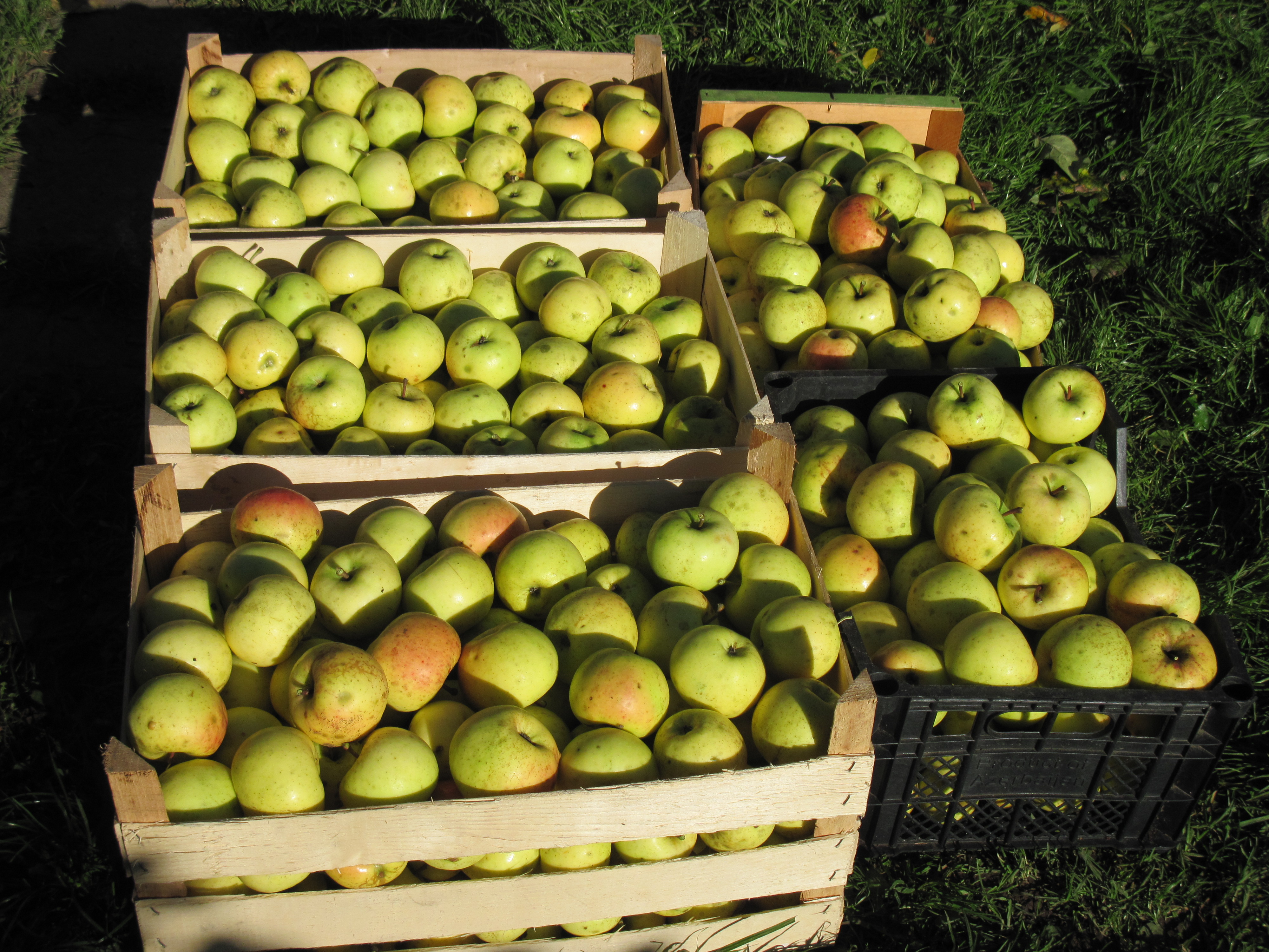 Наконец-то созрели самые последние сорта в моём саду, яблоки начали отдаваться в руки. На ветках Пиновы даже листьев уже не осталось, а плоды висели все до единого, ни один не упал на землю. Вчера был очень сильный ветер. Толстый лист старого железа, накрывавший чугунную ванну для полива огорода, неожиданно взмыл в небо и пролетел более шести метров. На пути у него была двухлетняя груша метровой высоты, но каким-то чудесным образом лист её даже не задел. Случается же такое...) Но при этом все яблоки остались на ветках. Наверное, это и есть то самое "качество селекции", присущее промышленным сортам. В прошлом году снимал их седьмого октября и явно поторопился. Надеюсь в этом году сроки сбора выбраны более удачно.