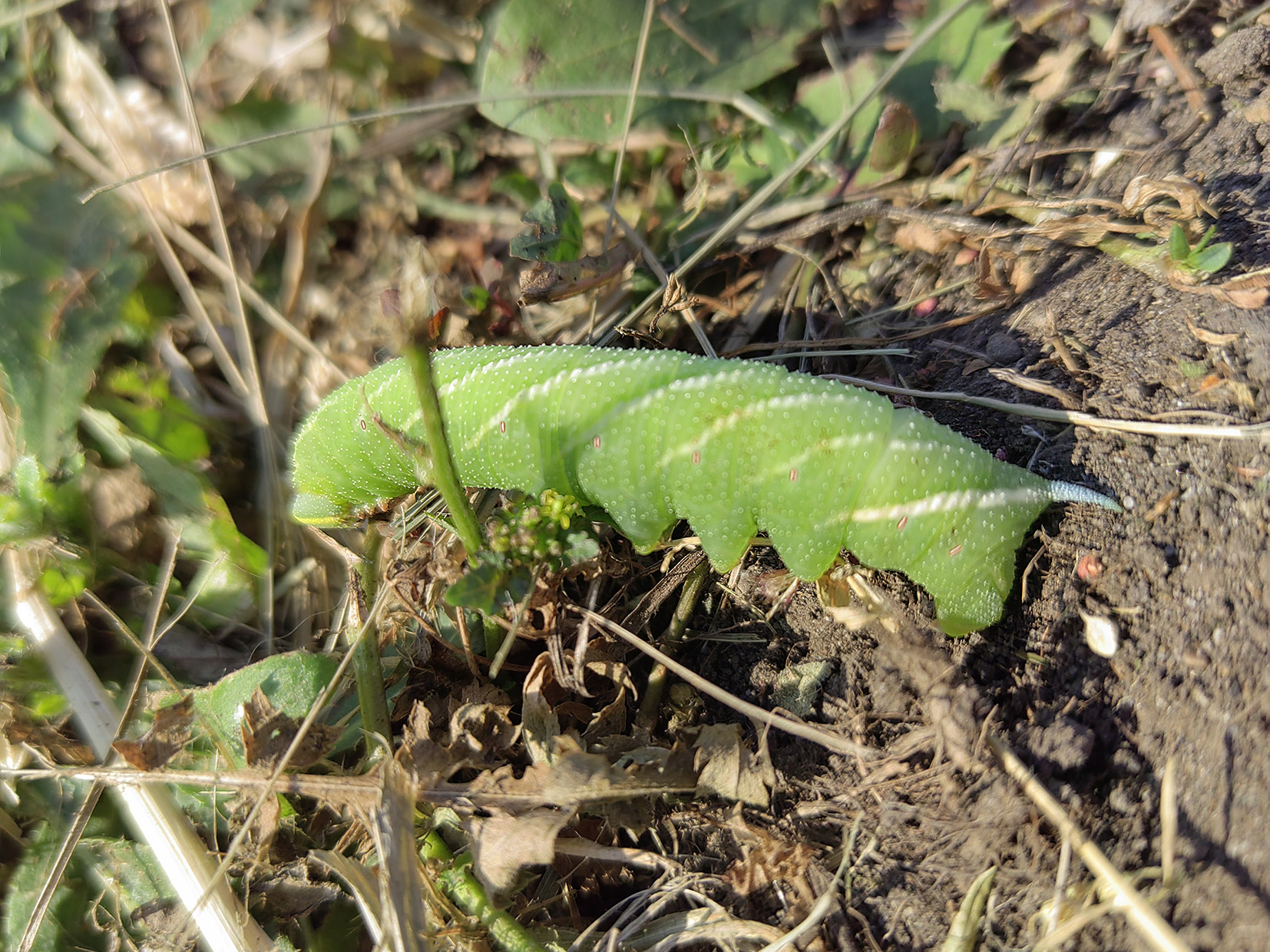 Это гусеница одного из бражников, ночных и сумеречных бабочек. Многие виды бражников - исчезающие, поэтому я бы не уничтожал, а перенёс на другое растение