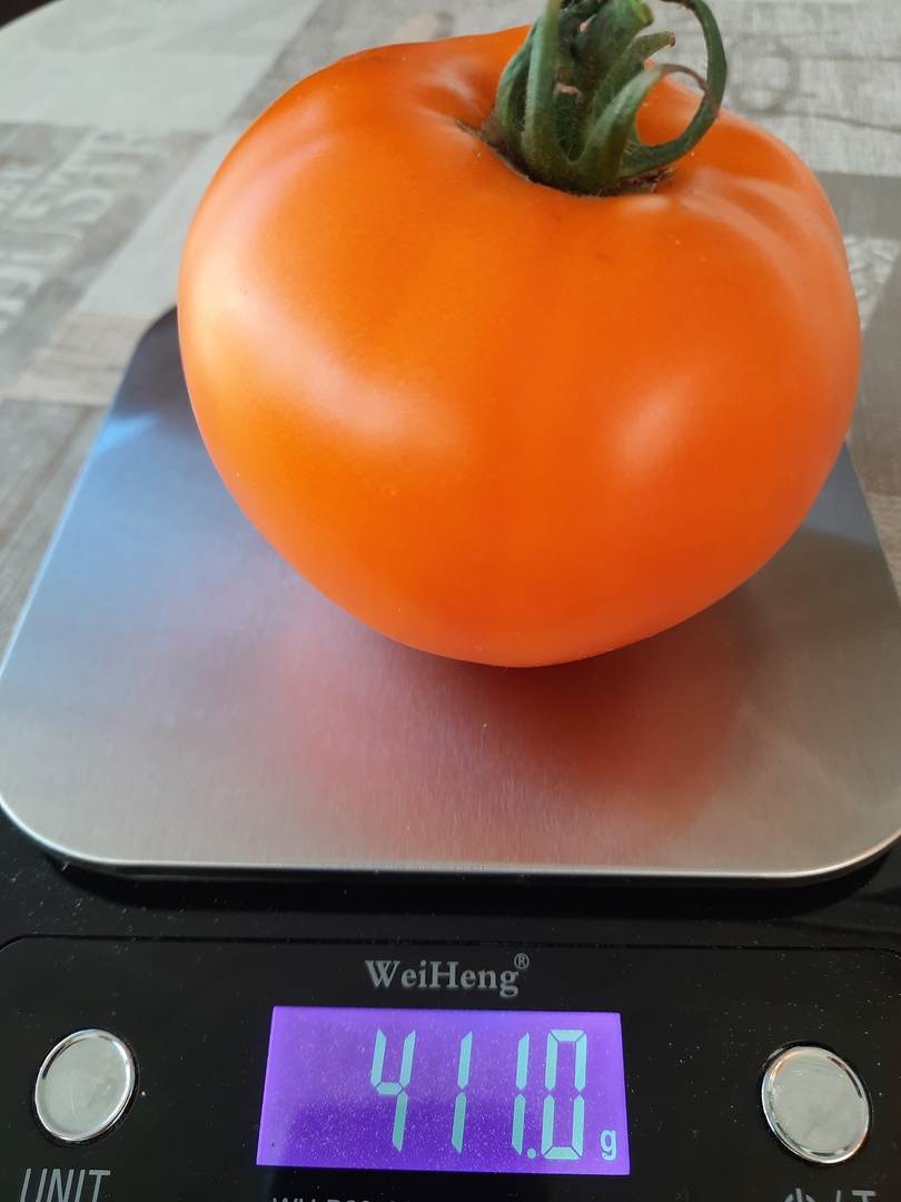 Оранжевых томатов не много. В теплице он своим ярким цветом сразу виден. На нём ни пятнышка, ни трещенки не было. Одним словом - идеальный!