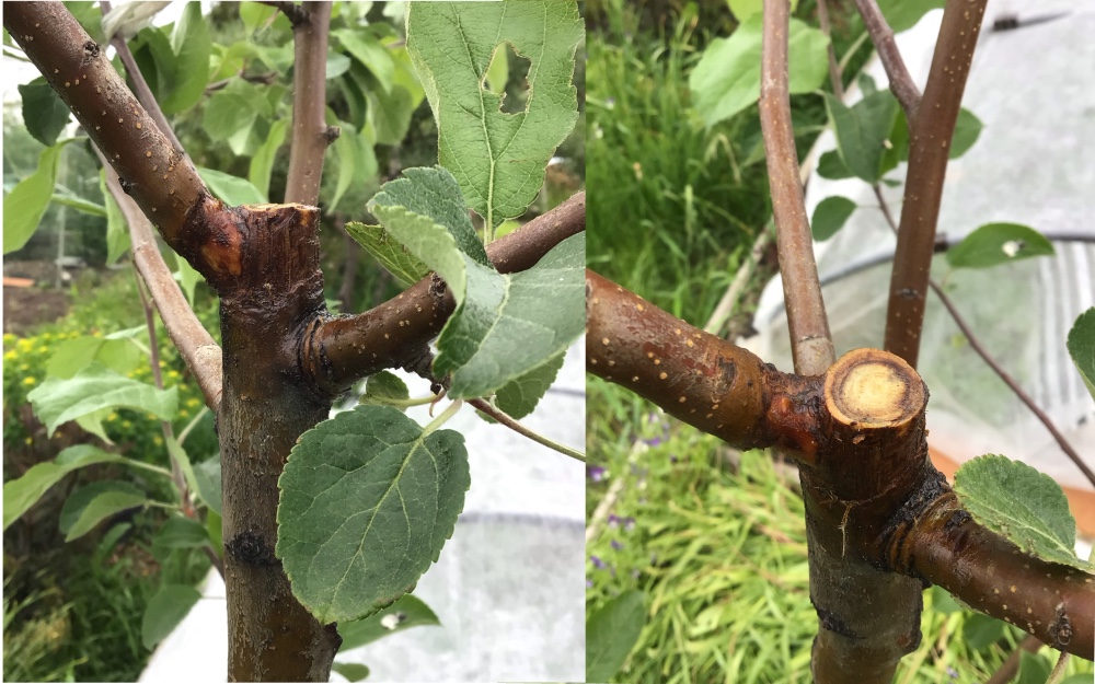 У молодой яблони пару лет назад подмерз центральный проводник и его спилили. Спил был широкий (более сантиметра), не затянулся и с тех пор кора яблони по стволу с этого места портится и отмирает, болезнь спускаясь все ниже. В прошлом году пришлось убрать боковую ветку, в этом году видимо тоже придется. Как это остановить? Спил каждый раз после пиления был обработан раннетом