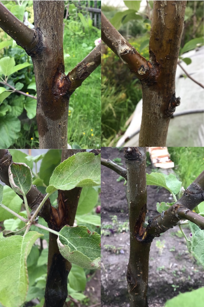 Вот сделала фото своих ужастиков. Спил и язвы у основания скелетных веток (с разных деревьев)