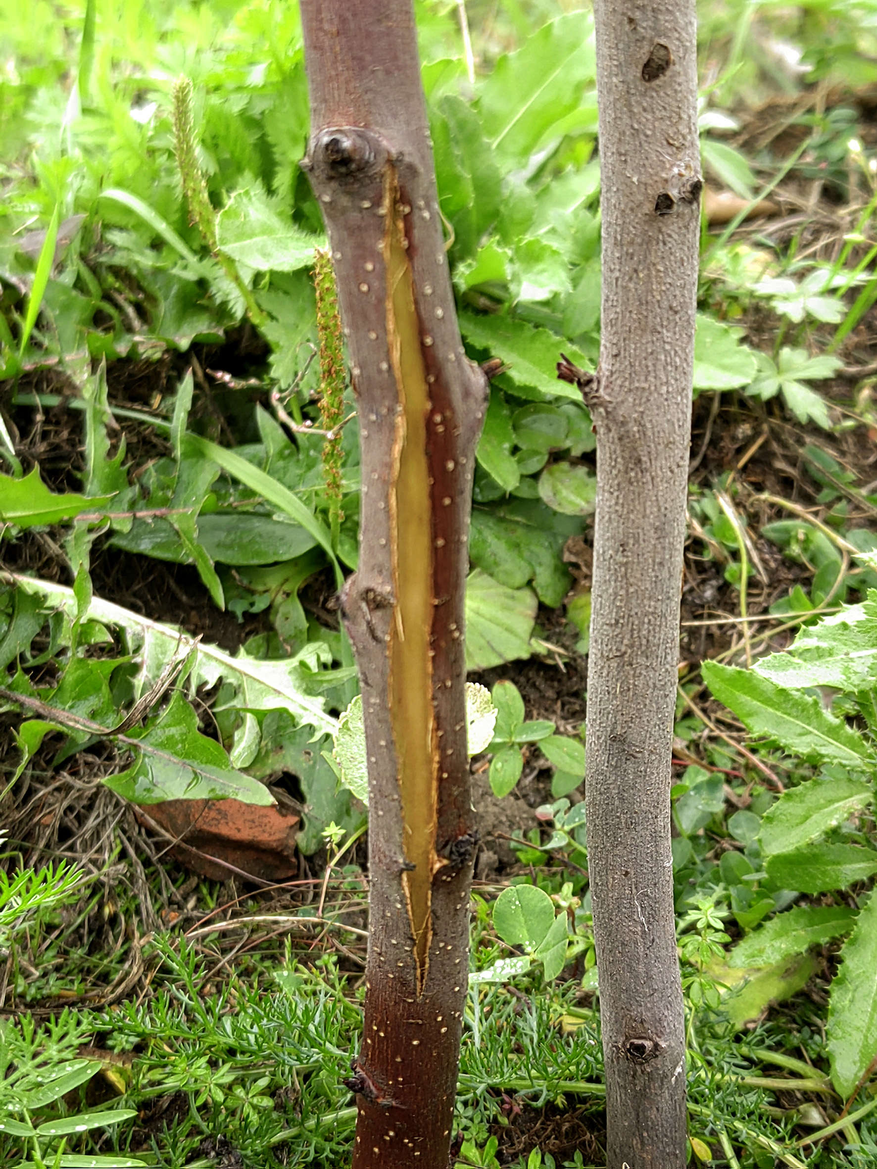 хммм вполне возможно, хотя я думала что потемнение коры от подмерзания, дерево сильно подверглось ему два года назад. А прошлое лето было очень жарким, но таких проблем не было, первый раз такое.