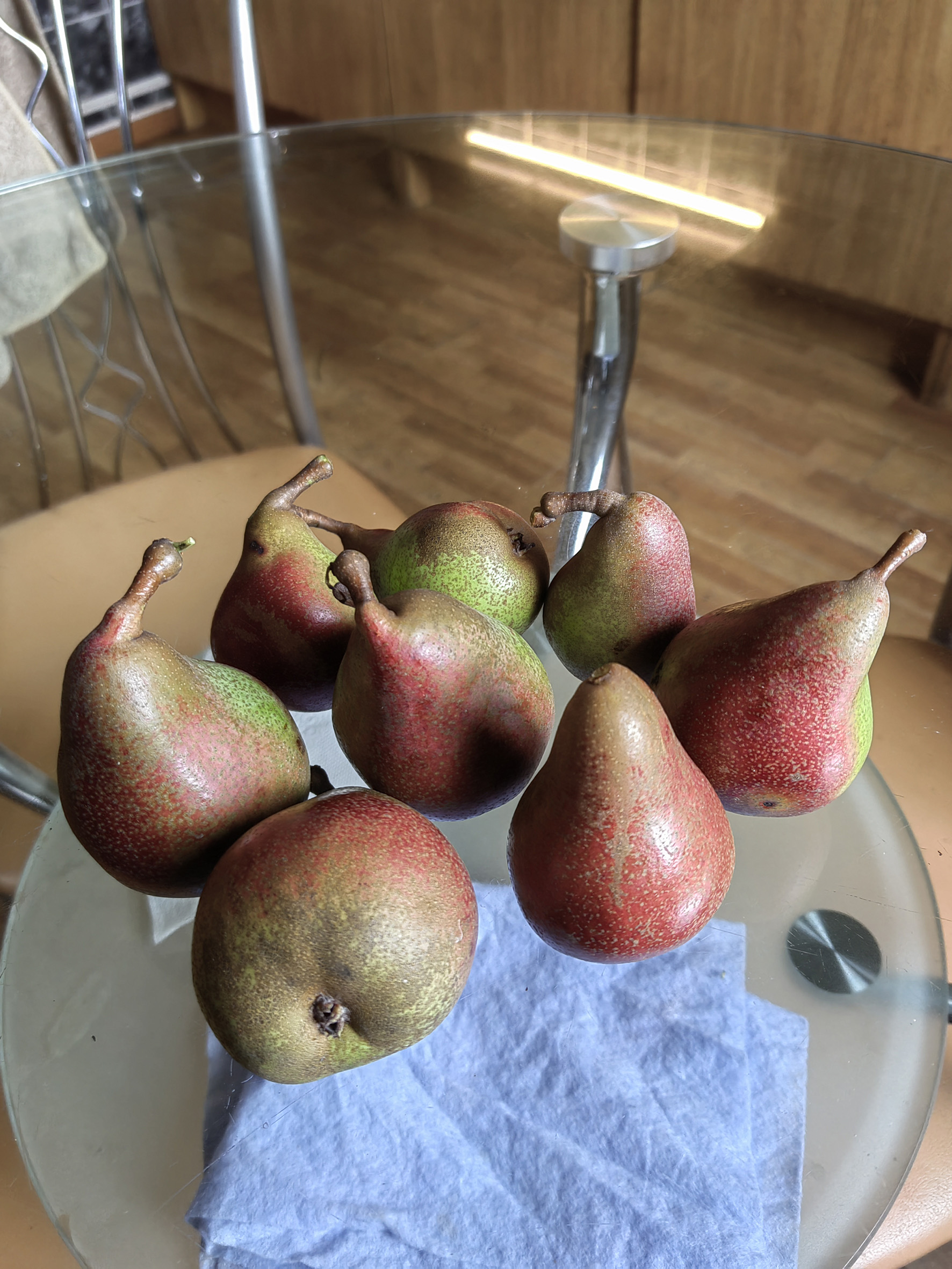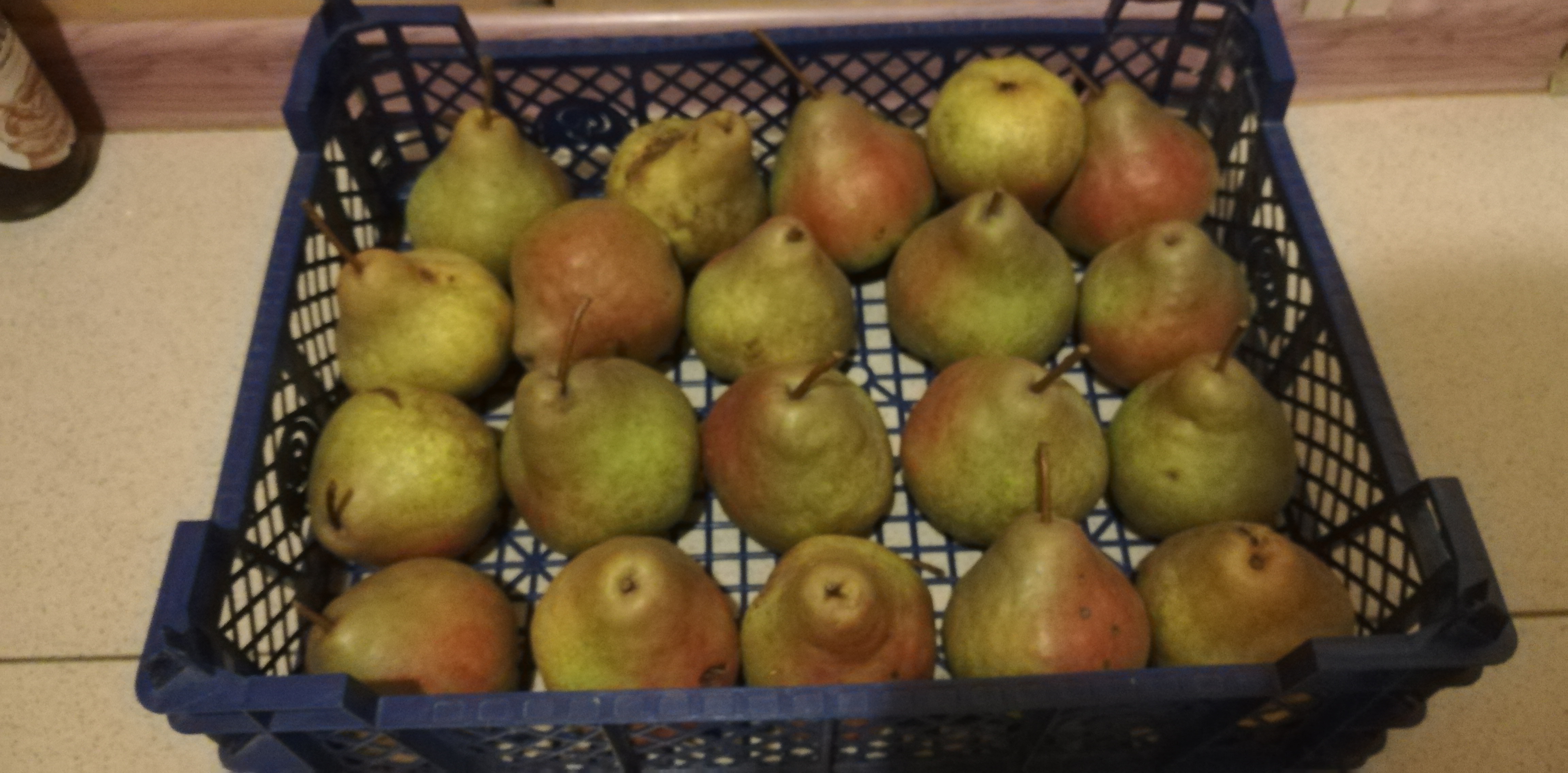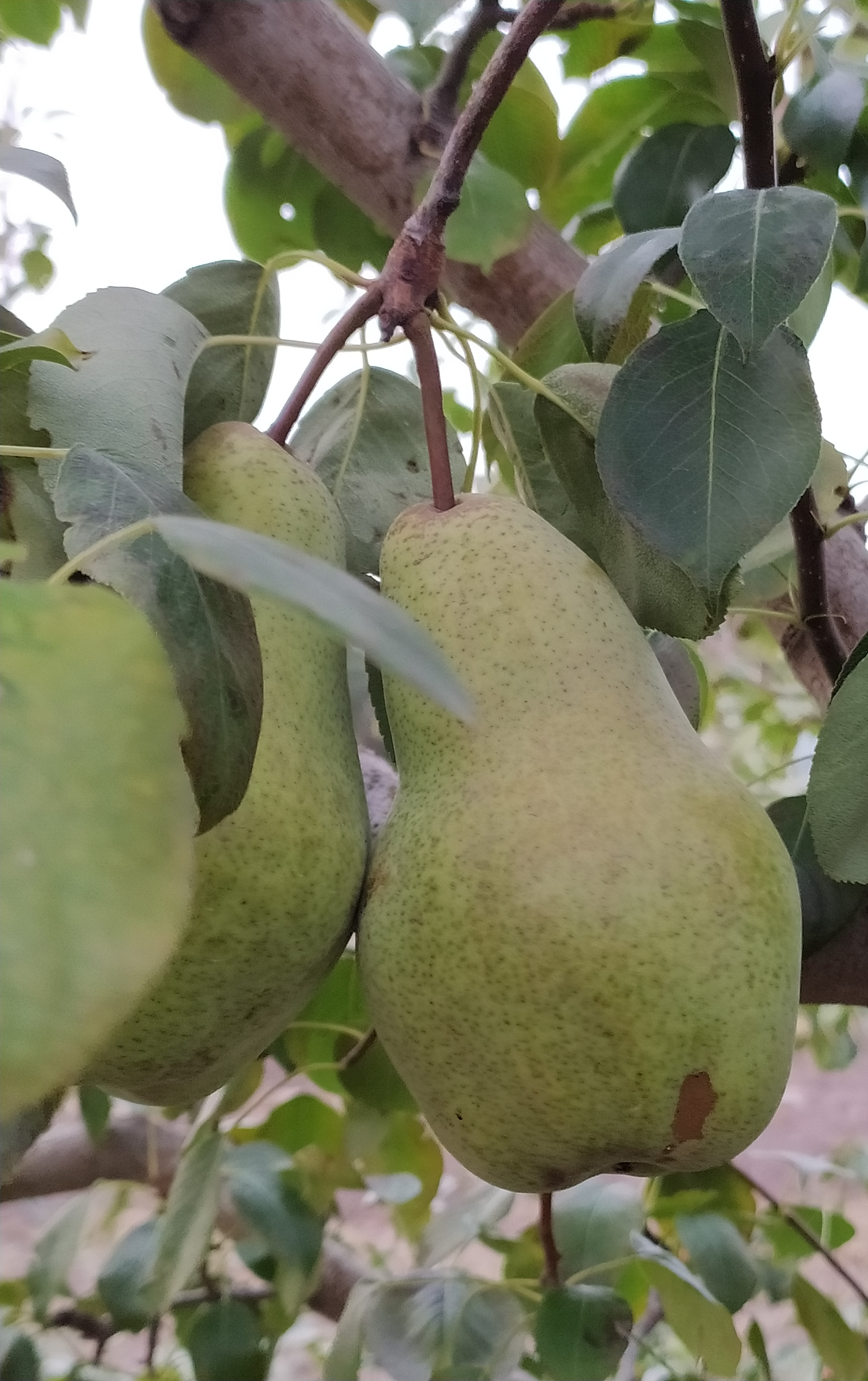 Сегодня сильный ветер начал сбивать груши. Пришлось снимать тех кто мог пострадать. Груш и так не изобилие.