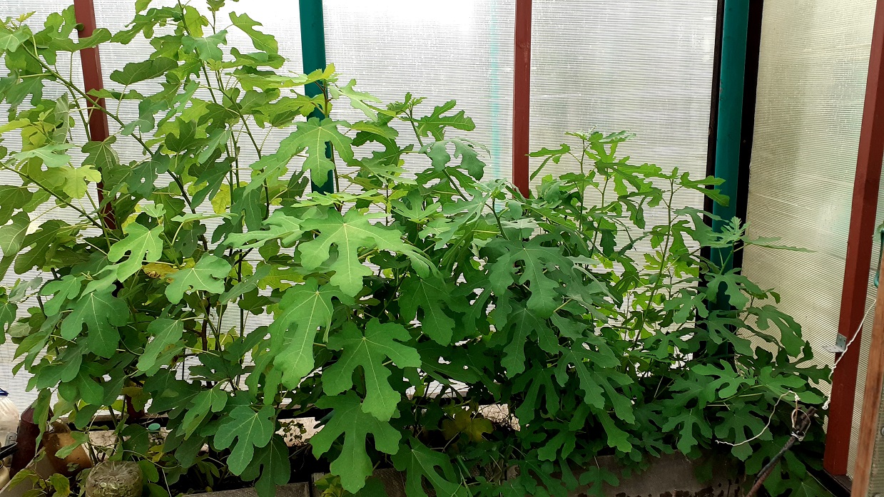 Обычная дачная теплица 3*6 м покрыта поликарбонатом 4 мм. Не отапливаемая. Год назад во время заморозков ставил туда тепловентилятор на пару ночей и всё. На зиму её наглухо закрывал и инжиры в ней конечно укрывал: пенопластовый короб от рыбы, поверх него пенофол 5 мм по всей площади теплицы. Во время весенних и осенних заморозков накидываю на растения спанбонд 40 в два слоя.