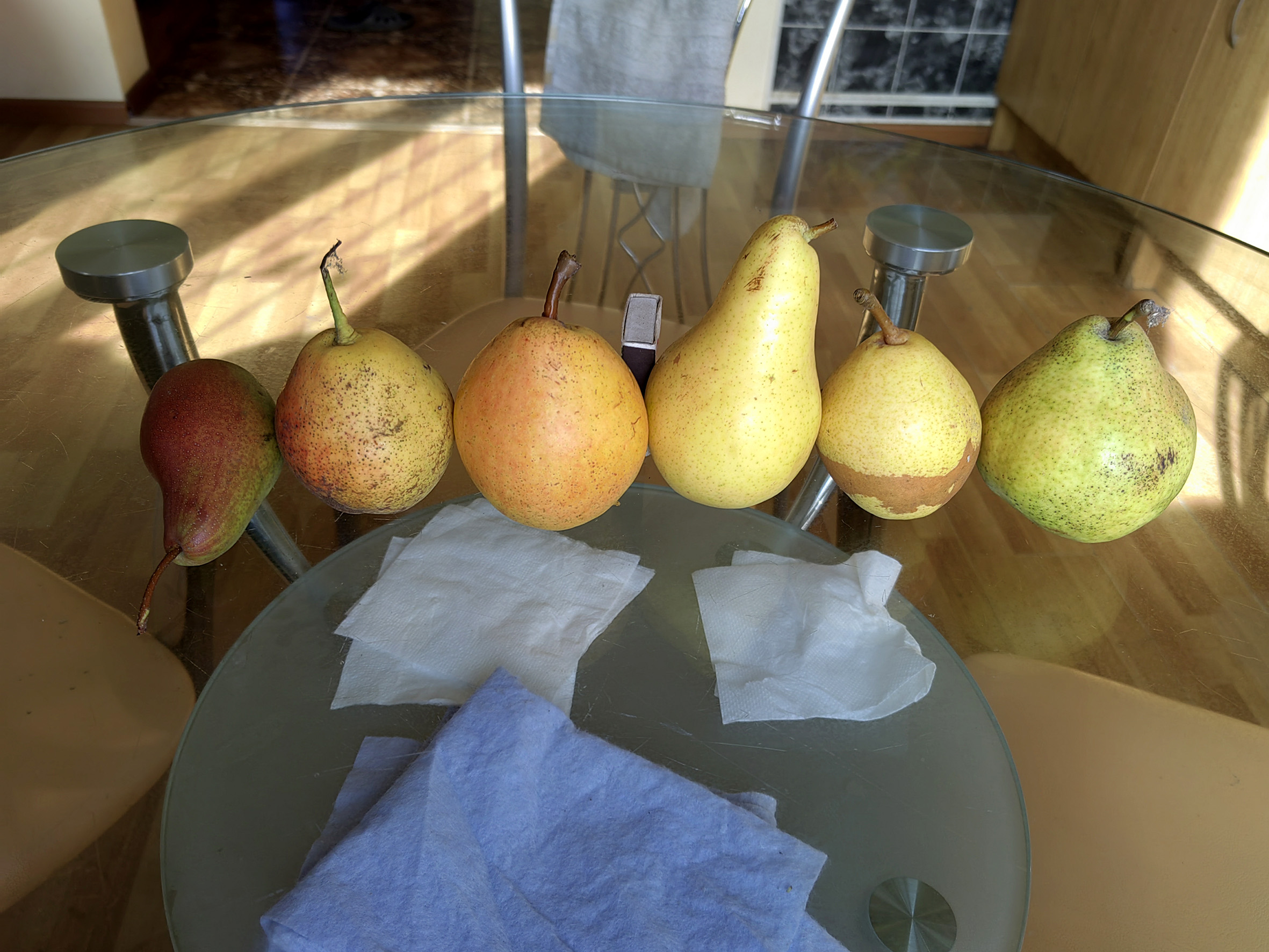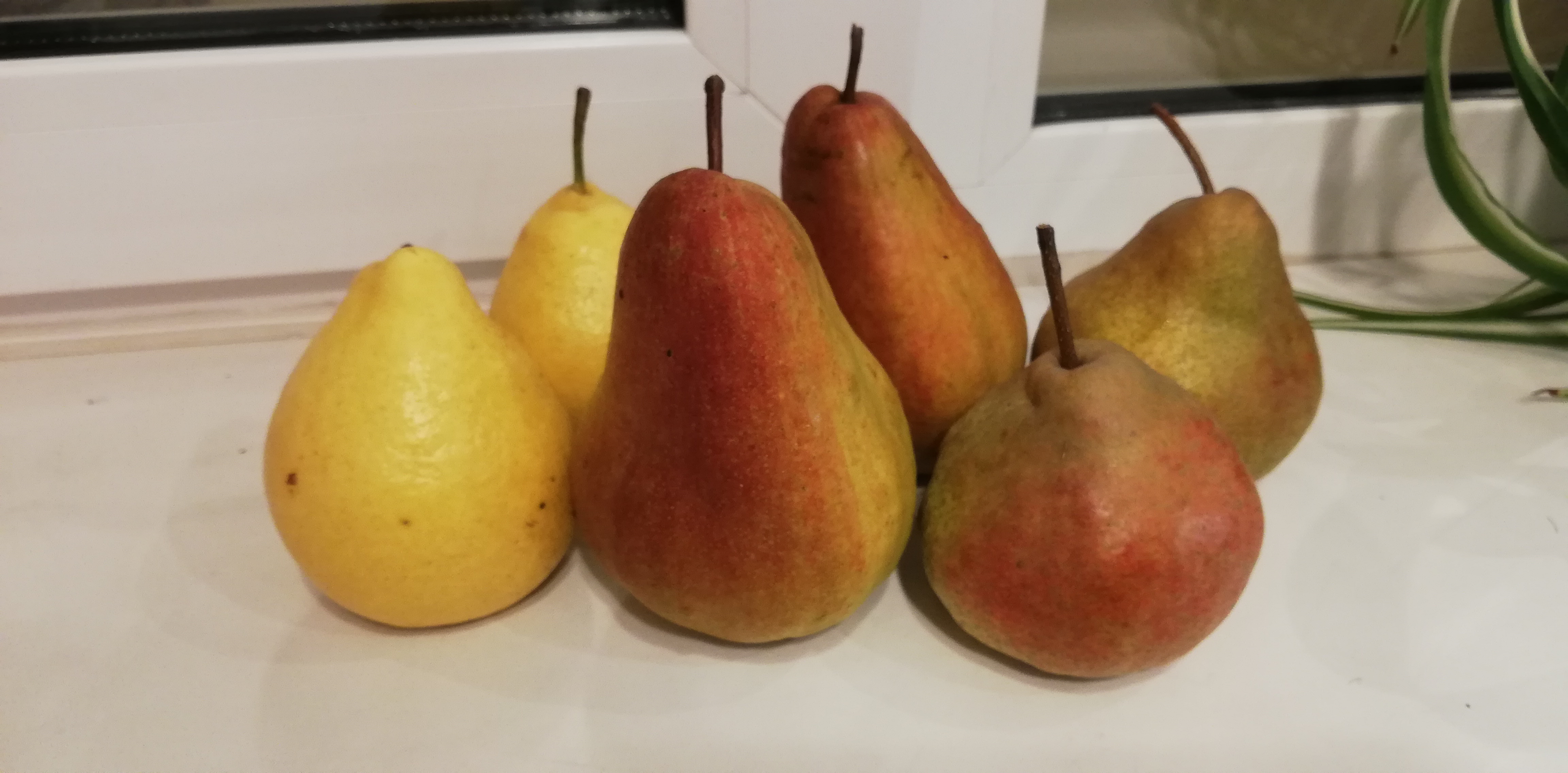 Груши слева направо Талгарская красавица, Любимица Яковлева, Памяти Жегалова, Лира, Ясочка,Просто Мария. Просто Мария-4.7, Лира, Ясочка,Талгарская Красавица-4.5, Память Жегалова-4.4,Любимица Яковлева-4.3. Дегустировали с сыном, у него другие оценки, самая лучшая Талгарская красавица, потом Просто мария, остальные тоже хорошие.Хочу отметить, все груши имеют четко различный вкус,понравился вкус Лиры, прививка этого года.От Ясочки ожидал большего.