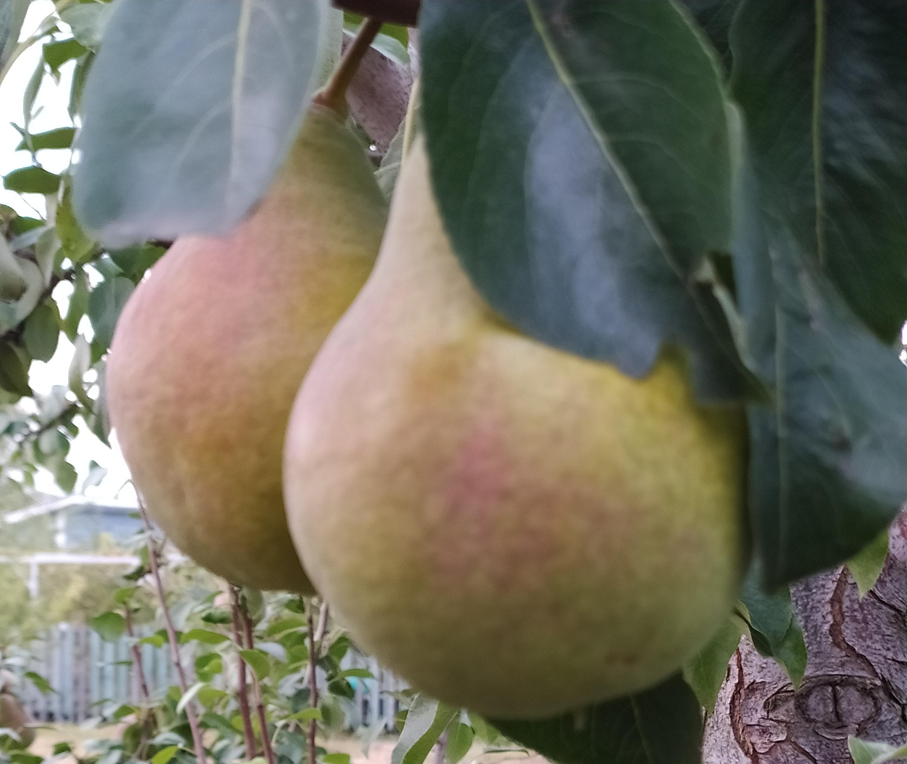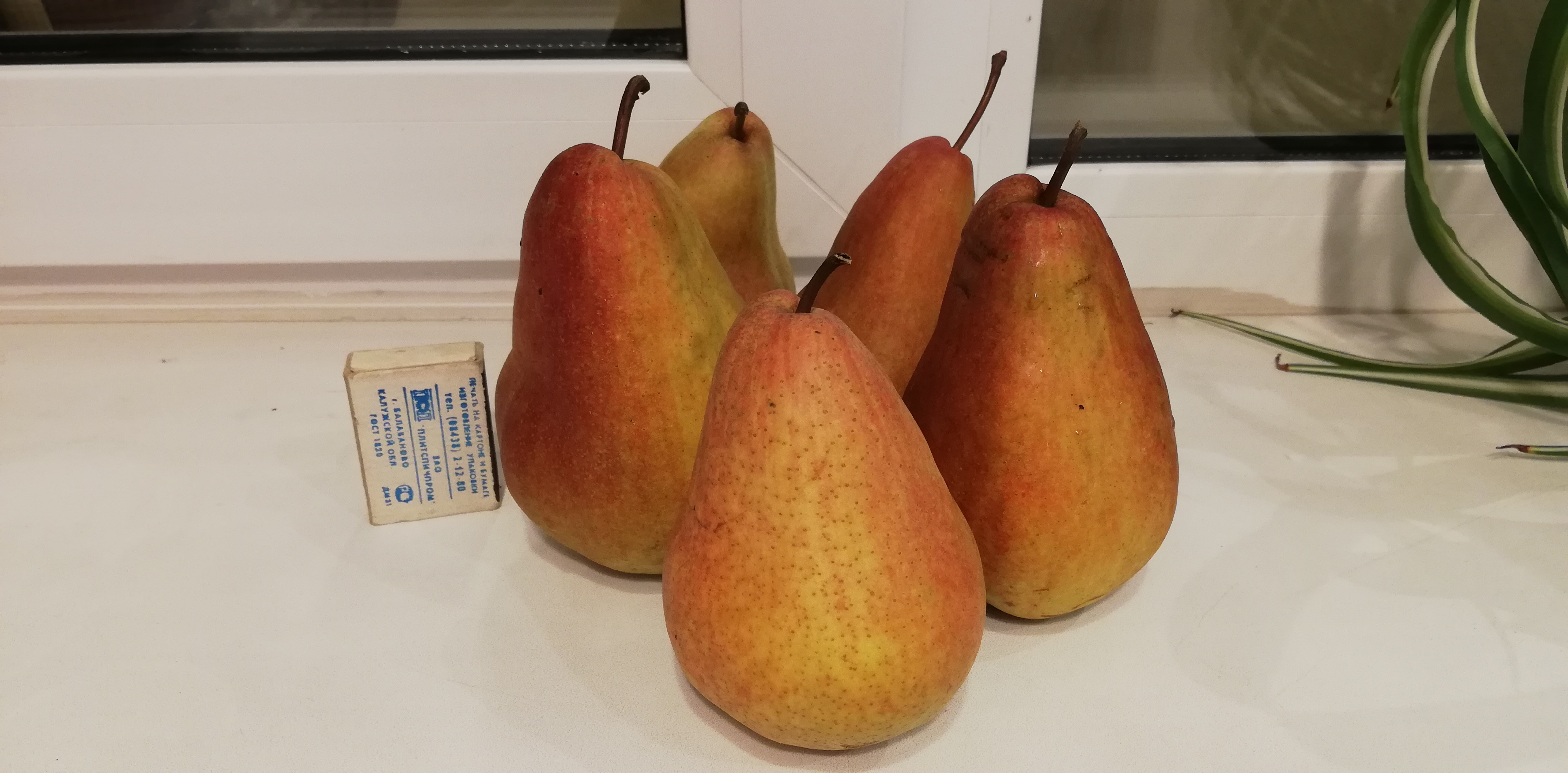 Талгарская красавица в этом году крупная, средний вес груш 150-160 гр., отдельные плоды около 200 гр., на хранение снял в начале сентября, часть оставил на дереве, висят до сих пор, вкус, что с дерева, что в хранении мне не нравится, на любителя, но как не странно в этом году вкус лучше, не такая сладкая как всегда, а обычно вкус приторный, даже есть не приятно. В хранении груши окрашиваются, становятся яркие красивые, но вкус не улучшается. В моих условиях груша беспроблемная, ни чем кроме ржавчины не болеет, я ее вообще не обрабатываю, зимостойкость достаточная, иногда в суровые зимы, при температурах ниже 30 градусов(32-33) частично подмерзают концы однолетних приростов, но на плодоношении это не сказывается Уже третий год подряд хочу удалить дерево, но рука не поднимается, возможно в этом году удалю, в качестве скелета использовать не решаюсь.-