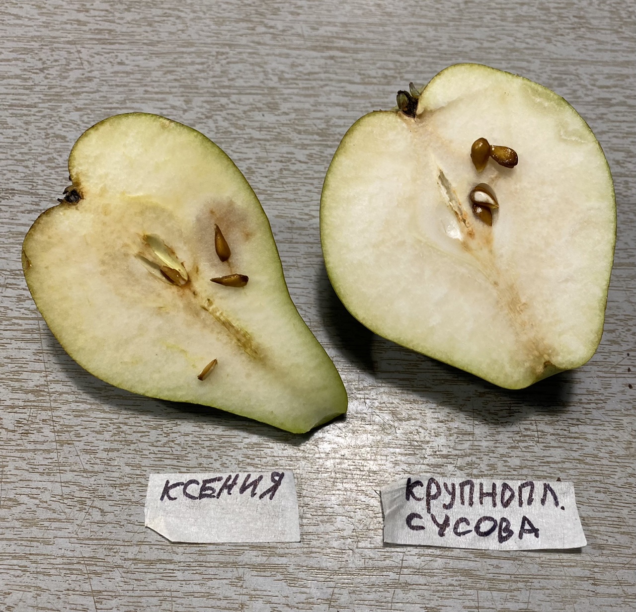 Марш, а вы когда снимаете Велесу, впрозелень или кушаете пожелтевшие и с ветки.У меня деревце Велесы 5год из надёжного источника(все купленные саженцы соответствуют заявленным сортам), первый год плодили, несколько крупных плодов, грамм за 250, пожелтели на ветке с румянцем.Удивлению моему не было предела, когда после ожидаемого превосходного вкуса, получились плоды с терпковатой кожицей.Варианта два :либо недостаток влаги лето было сухое, либо другой сорт(предполагаю).А рядом груша Просто Мария порадовала крупными вкусными плодами южного формата.Марш писал(а): ↑30.09.2022, 17:17"""""""Мякоть кремоватая, средней плотности, полумаслянистая, нежная, сочная, кисловато-сладкая, отличных вкусовых качеств.""""""""""""""""