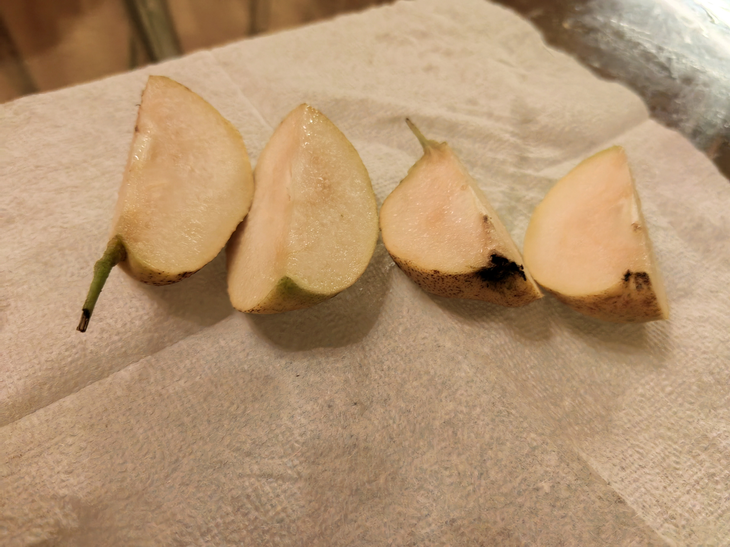 Очередная контрольная выборка Велесы из холодильника. На шестой неделе хранения полёт нормальный, признаков порчи не обнаружено ни у одной груши. Кожица заметно посветлела и пожелтела. Плоды сочные, практически без потери вкуса. Потенциал для дальнейшего хранения ещё приличный.