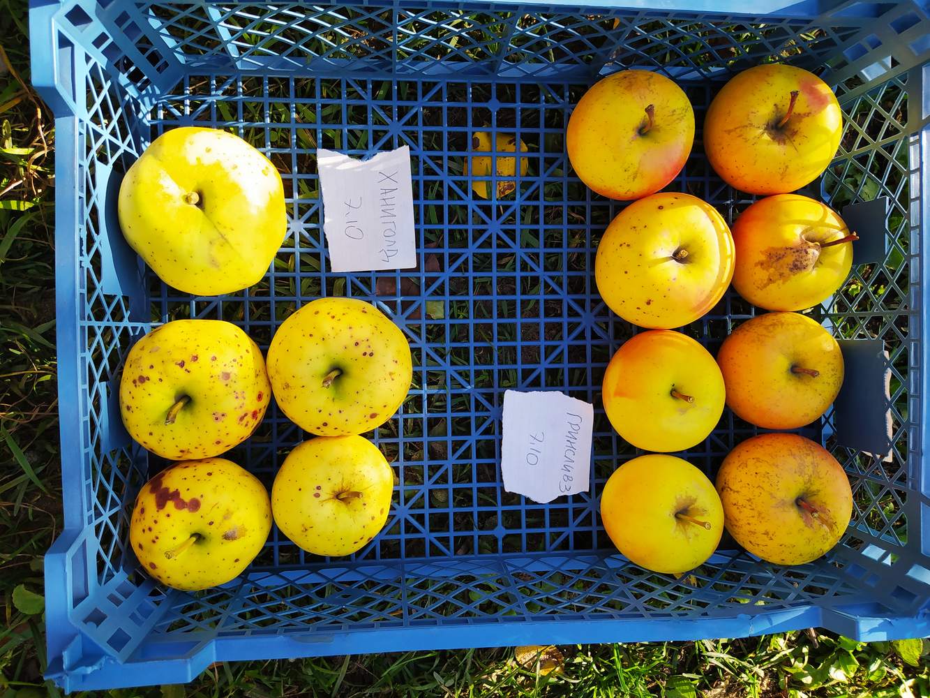На самом деле таких примеров можно привести очень много. Ниже фото плодов Гринсливз и Ханиголд. Если у первого можно найти пятна поверхностных гнилей лишь на небольшой части плодов, то у Ханиголд этой дрянью поражены практически все яблоки. Причем появились эти пятна лишь к концу сентября, а до этого момента выглядели абсолюно здоровыми: