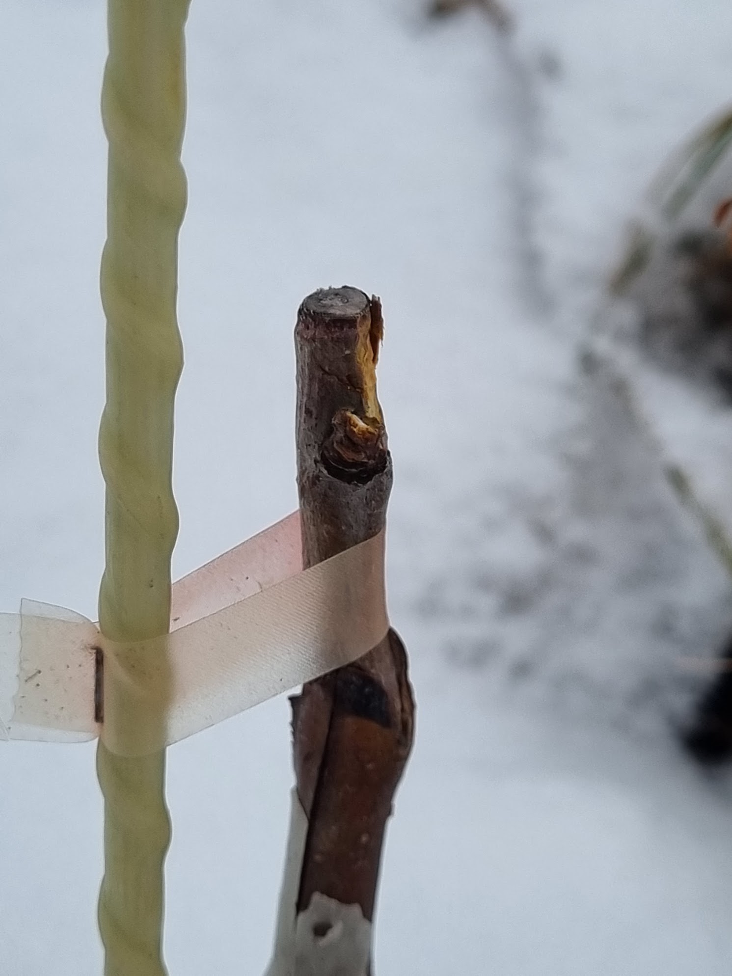 Почему НЕвызревшей соединительной ткани? Или вы считаете, что две недели при комнатной температуре не достаточно? Но такова технология зимней прививки. И считается этого времени достаточно для сращивания черенка с подвоем.Zener писал(а): ↑26.11.2022, 20:50Высаженные в ОГ погибнут по причине невызревшей соединительной ткани.Я бы весной перепривил копулировкой оставшиеся подвои,весенние окулировки плохо приживаются.3-хпочечные стандартные черенки,оставляю один побег.Эвелин писал(а): ↑26.11.2022, 18:16Может быть саженцы вот с этими учелевшими одной или двумя почками и где обгрызана по кругу кора подвоя (или привоя) можно ещё спасти. Если возможно выкопать такой саженец (с комом земли, земля наверно ещё сильно не промерзла) и сделать так называемую зимнюю прививку этим же черенком с уцелевшими почками.