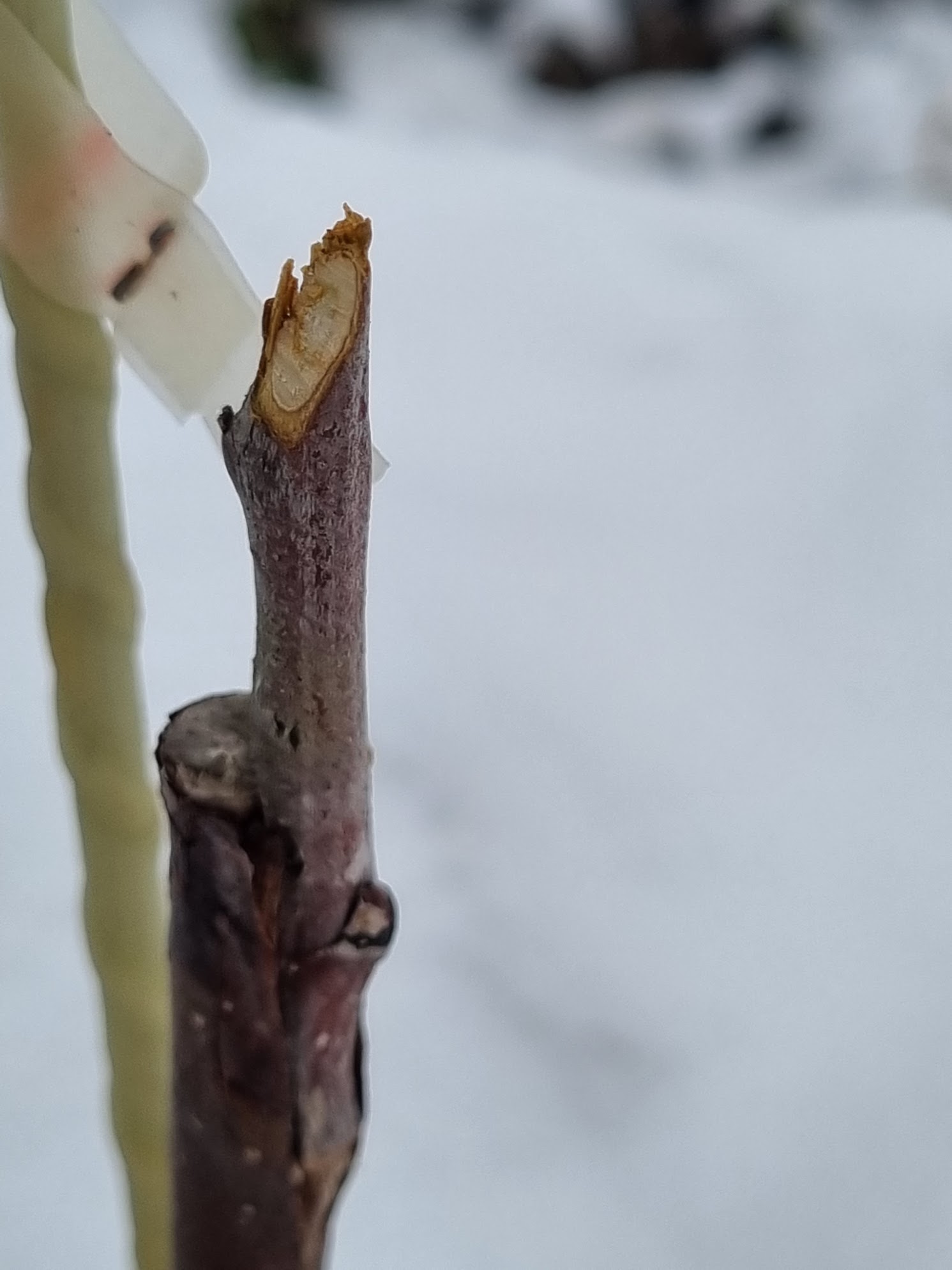 Высаженные в ОГ погибнут по причине невызревшей соединительной ткани.Я бы весной перепривил копулировкой оставшиеся подвои,весенние окулировки плохо приживаются.3-хпочечные стандартные черенки,оставляю один побег.Эвелин писал(а): ↑26.11.2022, 18:16Может быть саженцы вот с этими учелевшими одной или двумя почками и где обгрызана по кругу кора подвоя (или привоя) можно ещё спасти. Если возможно выкопать такой саженец (с комом земли, земля наверно ещё сильно не промерзла) и сделать так называемую зимнюю прививку этим же черенком с уцелевшими почками.
