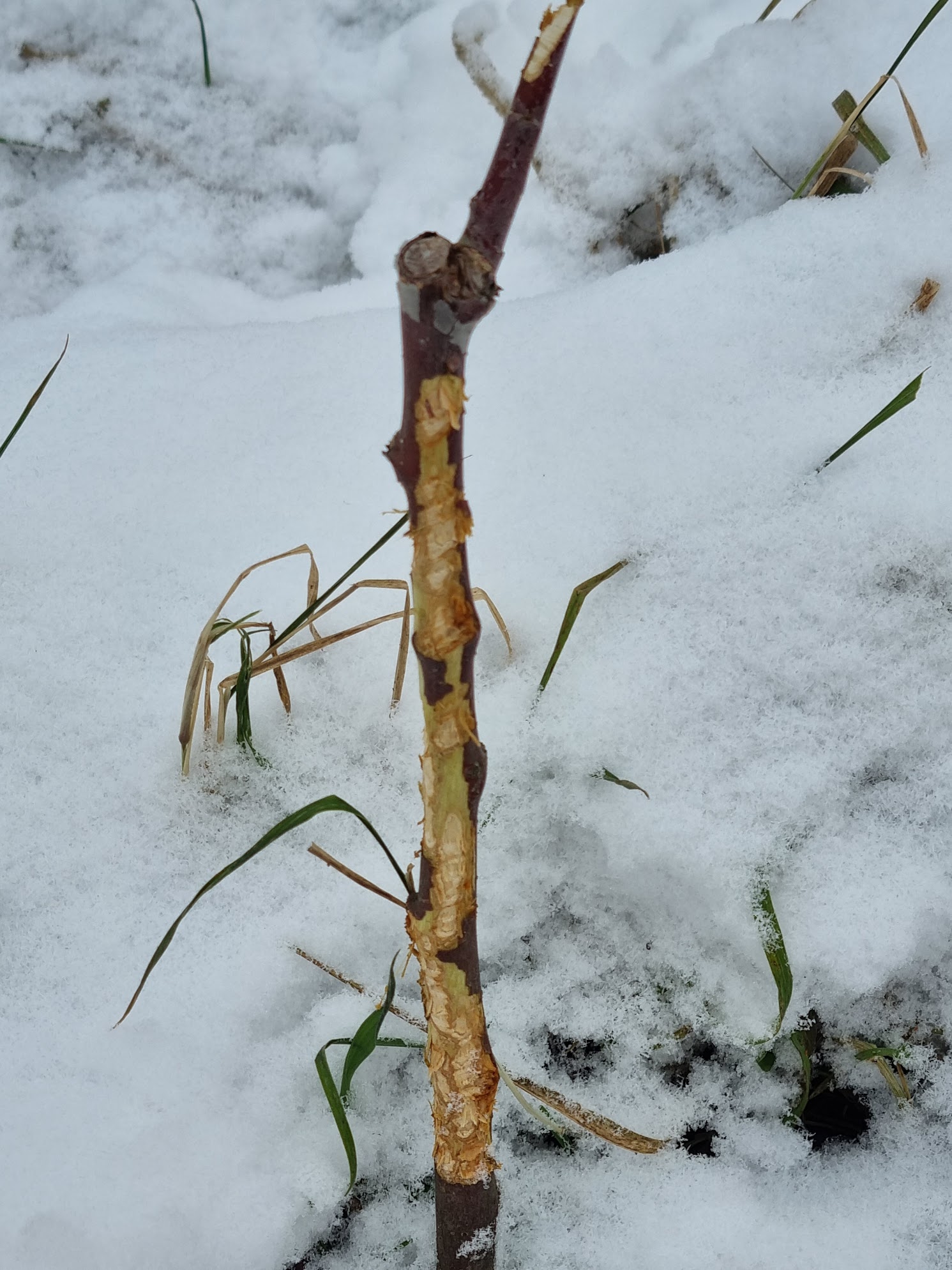 Плохо закрыл ворота, пришел заяц и сожрал все мои прививки, подвой практически не тронул. Некоторые привки съедены под ноль, на других вроде есть почка, может отрастет. Вот сижу и не знаю чего мне дальше делать...