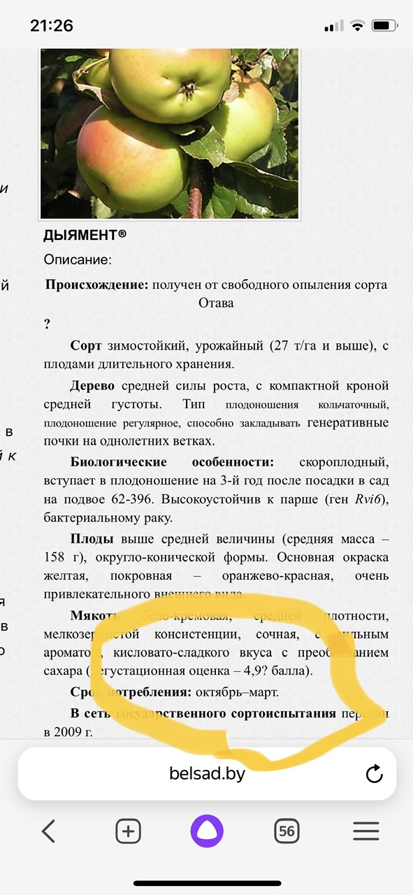 Я не писал, что Дыямент не хранится до марта. Мне передавали яблоки Дыямента из Белсадовского хранилища в феврале. Хранится и не теряет консистенцию в марте, не одно и тоже. У меня тоже хранится до марта, вкус сладкий, не 4,9 балла, но 4,5 железных. Почему заострил вопрос. Вот Белана действительно очень прилично хранится до марта без потери консистенции, мякоть колющаяся, сладкая, правда вкус попроще, нет такого парфюма. И очень похожа на верхнее фото. Некоторые сроки хранения на сайте Белсада указаны, наверно, для идеальных хранилищ у нас они похуже.