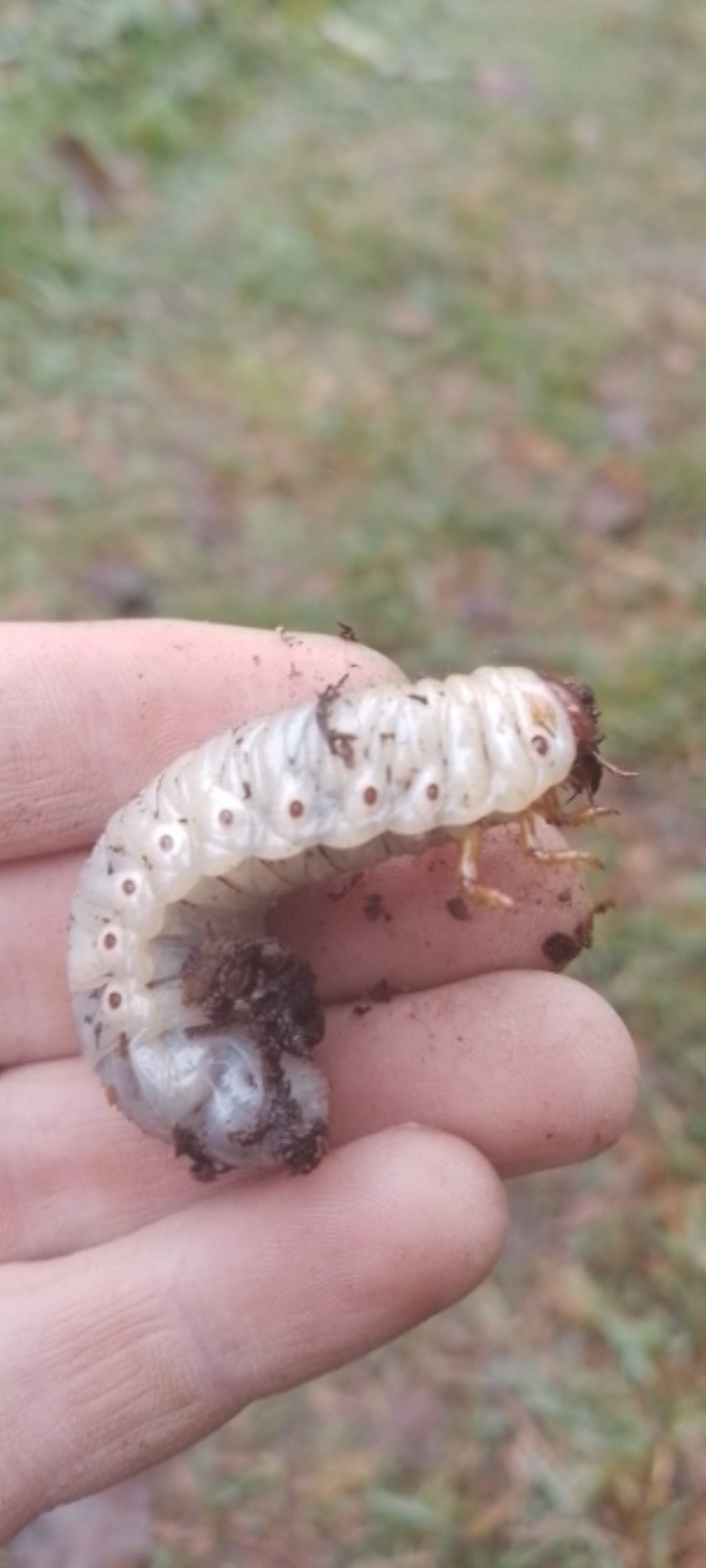 Я личинки носорога и бронзовки тоже не отличу, но хруща-то видно! Во какик ноги и жесткий он.