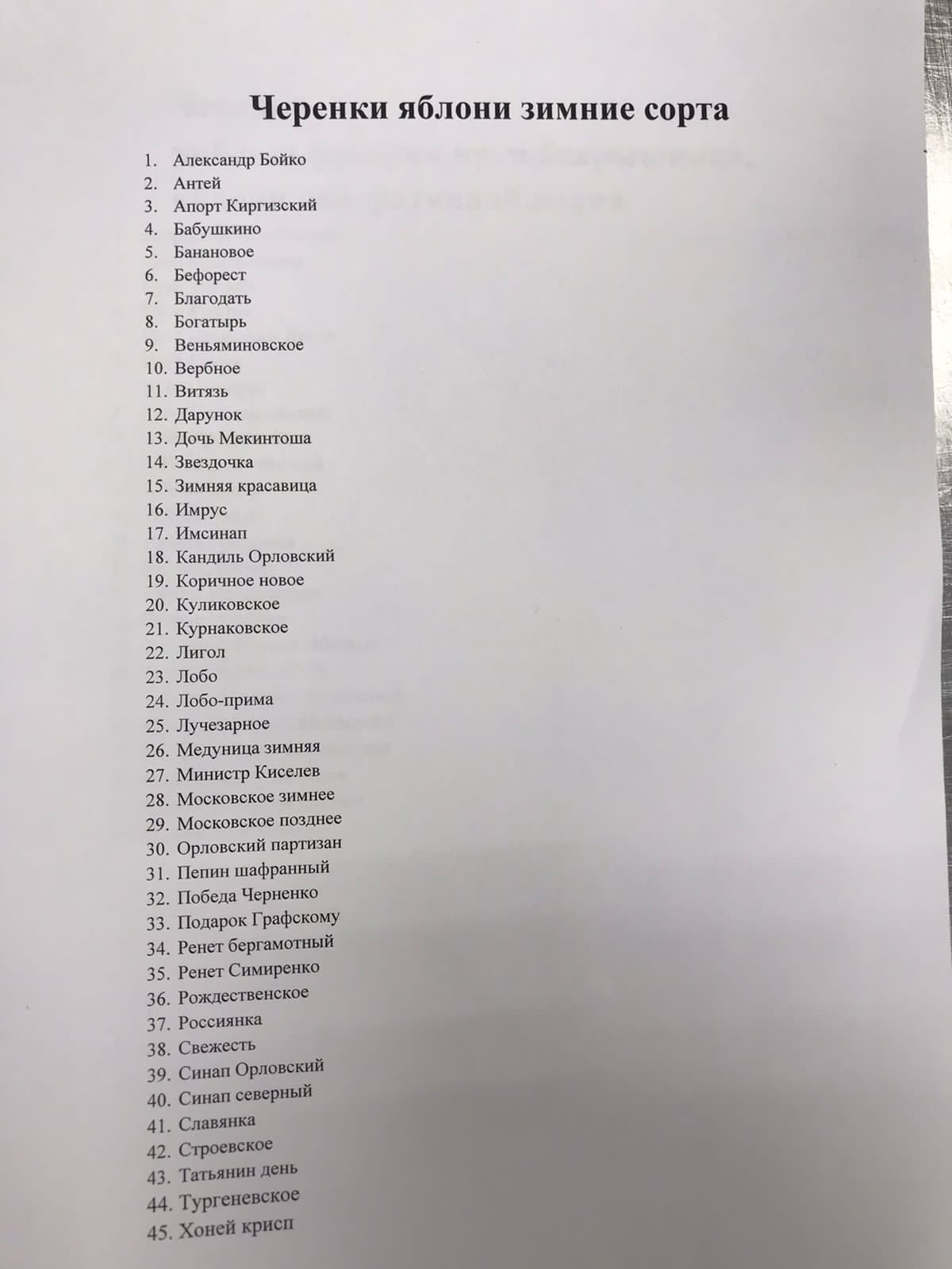 Список черенков яблонь ,груш ,слив и алычи на продажу на этот год (2022-2023)