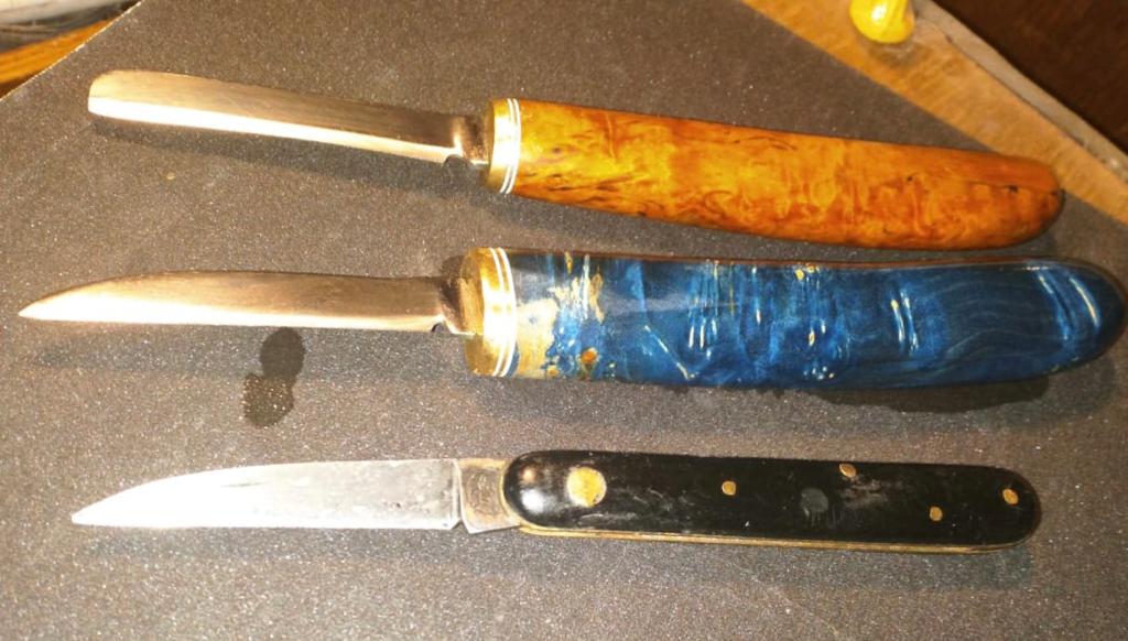 Пользуюсь именно переточенным советским кухонным ножом из 60 годов . Острый и удобный , лезвие не тупится очень долго .А также использую китайский клон швейцарского ножа Викторинокс Спартан. Тоже удобный и острый.