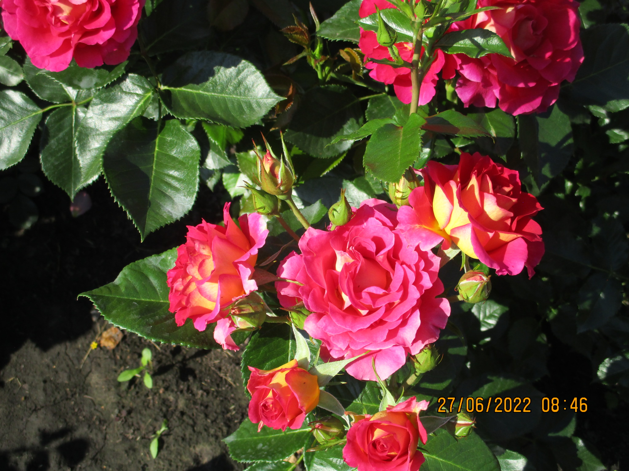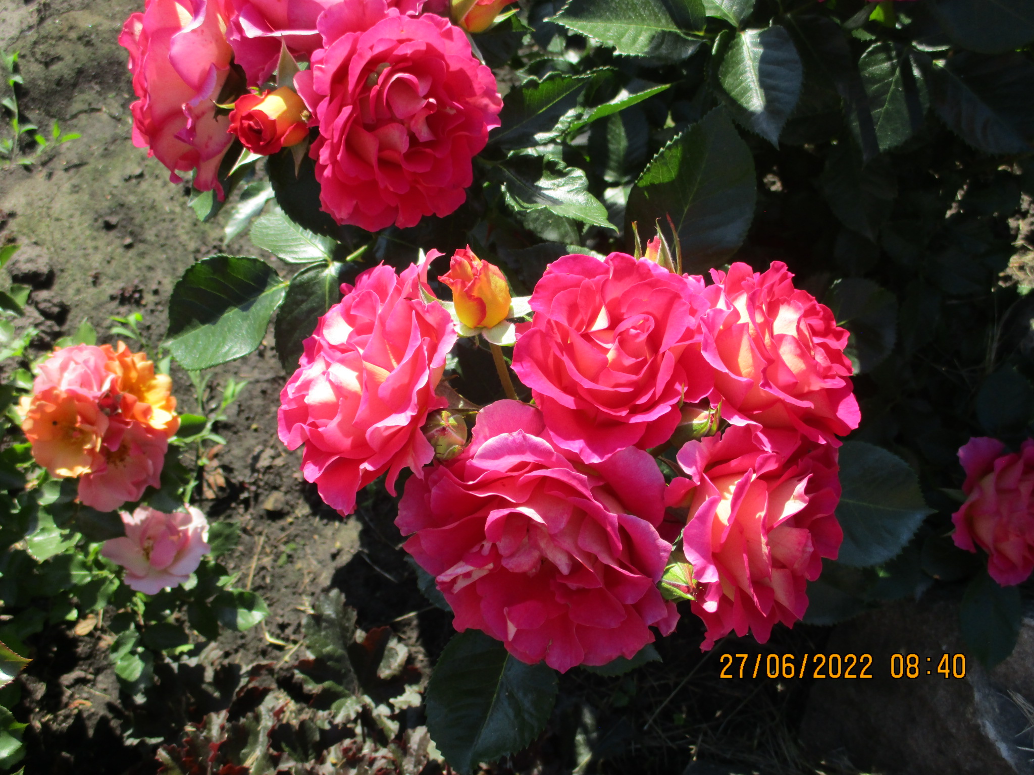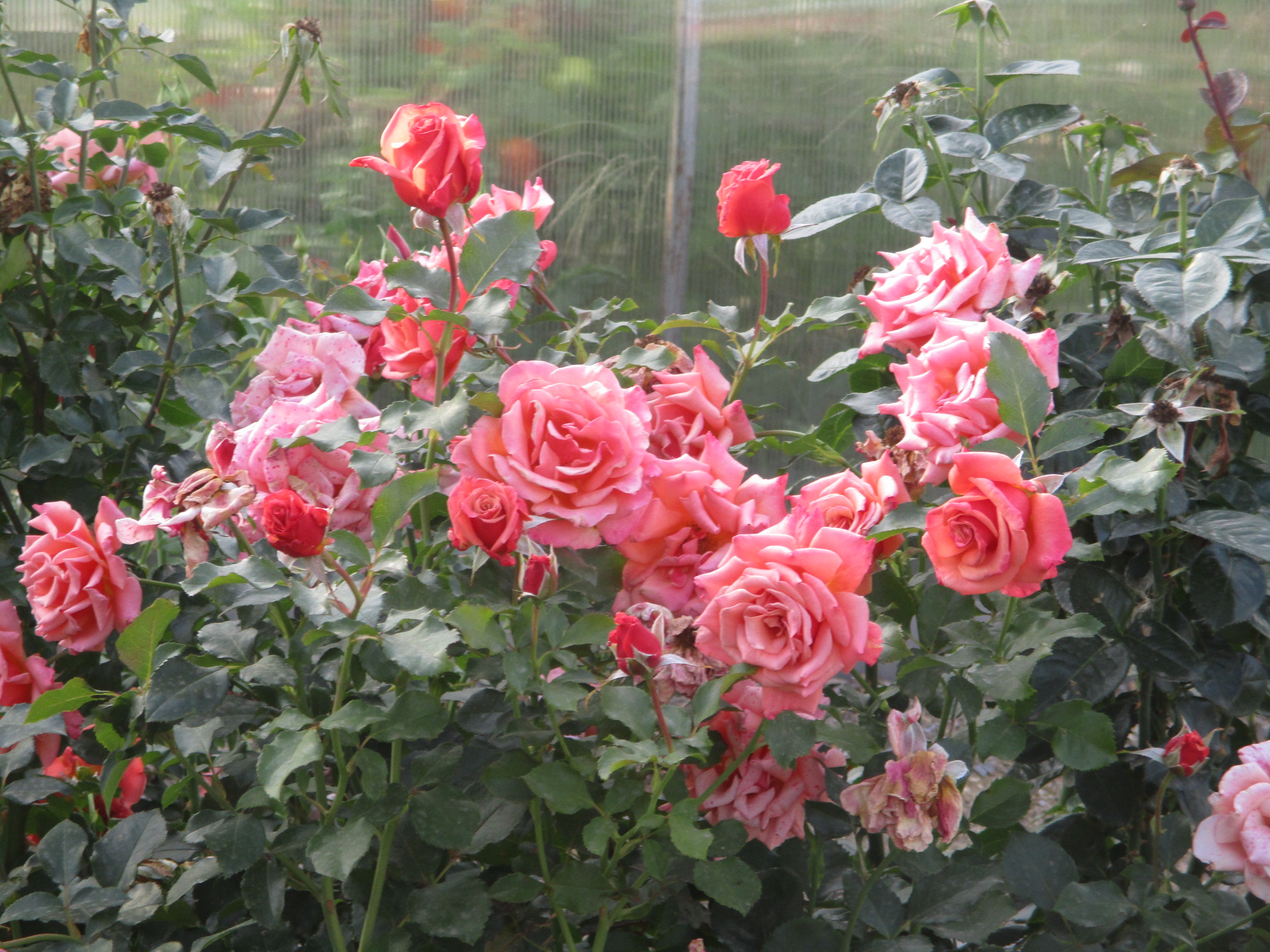 Четыре розы весенней посадки,первогодки,хорошо цвели.