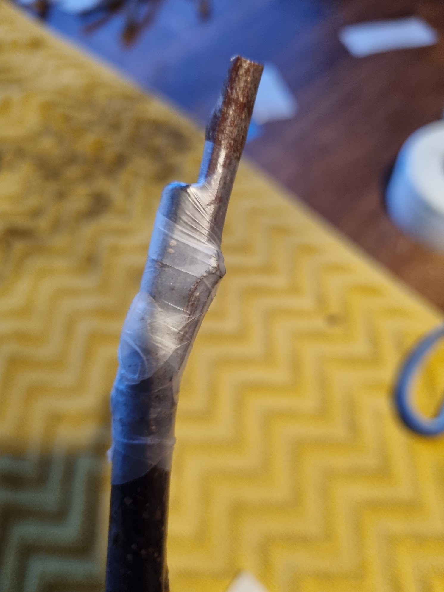 Такие улучшенной копулировкой Кстати, вместо улучшенной думаю в будущем использовать обычную. Исследований не проводил, но мне кажется срастание лучше, меньше заусенцев, лучше прилегание. Улучшенная нужна для удобства обмотки, если в неудобном месте работаешь, на высоте и пр. Если получиться обвязать и без язычка, то зачем тратить на это время?