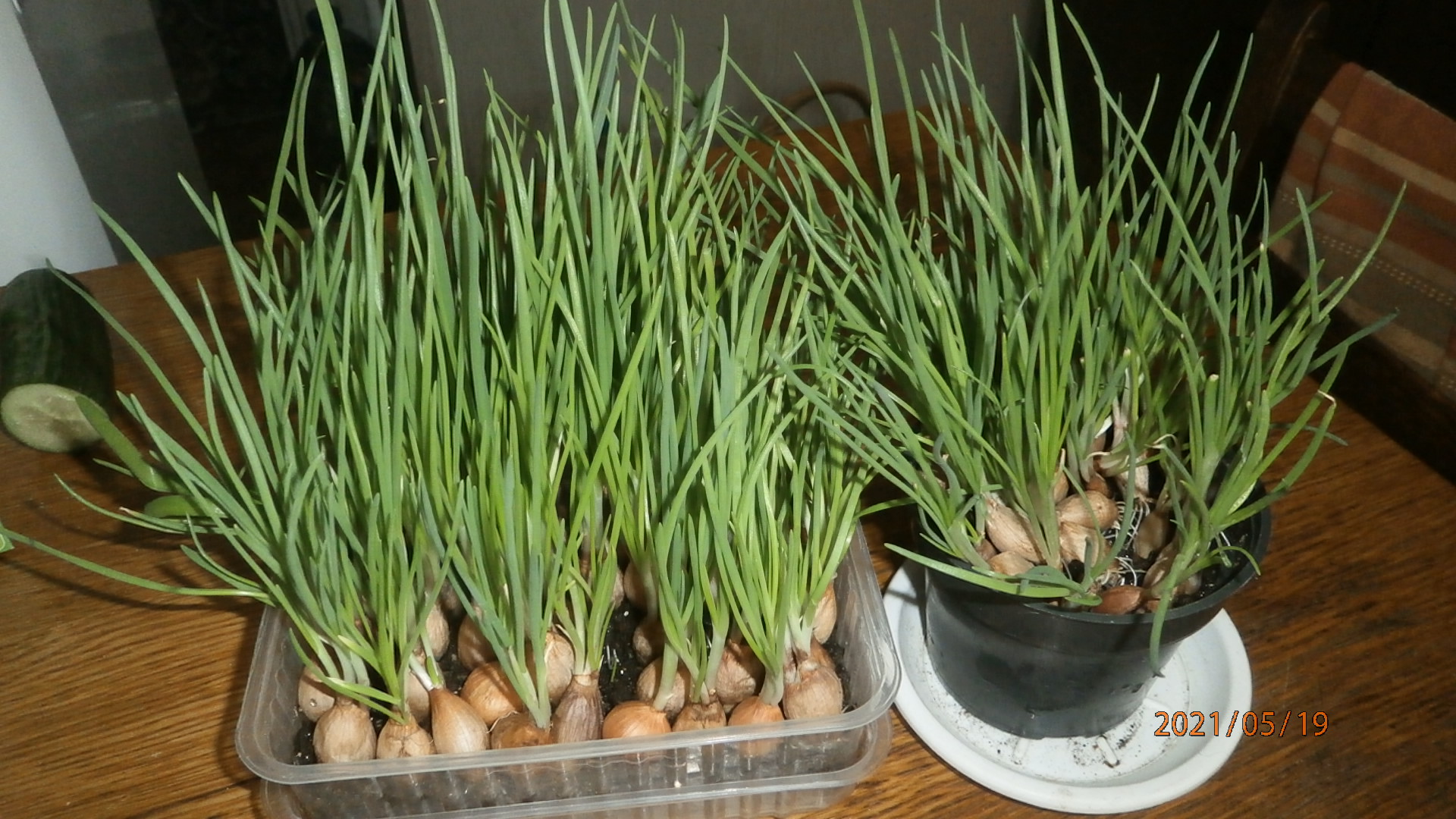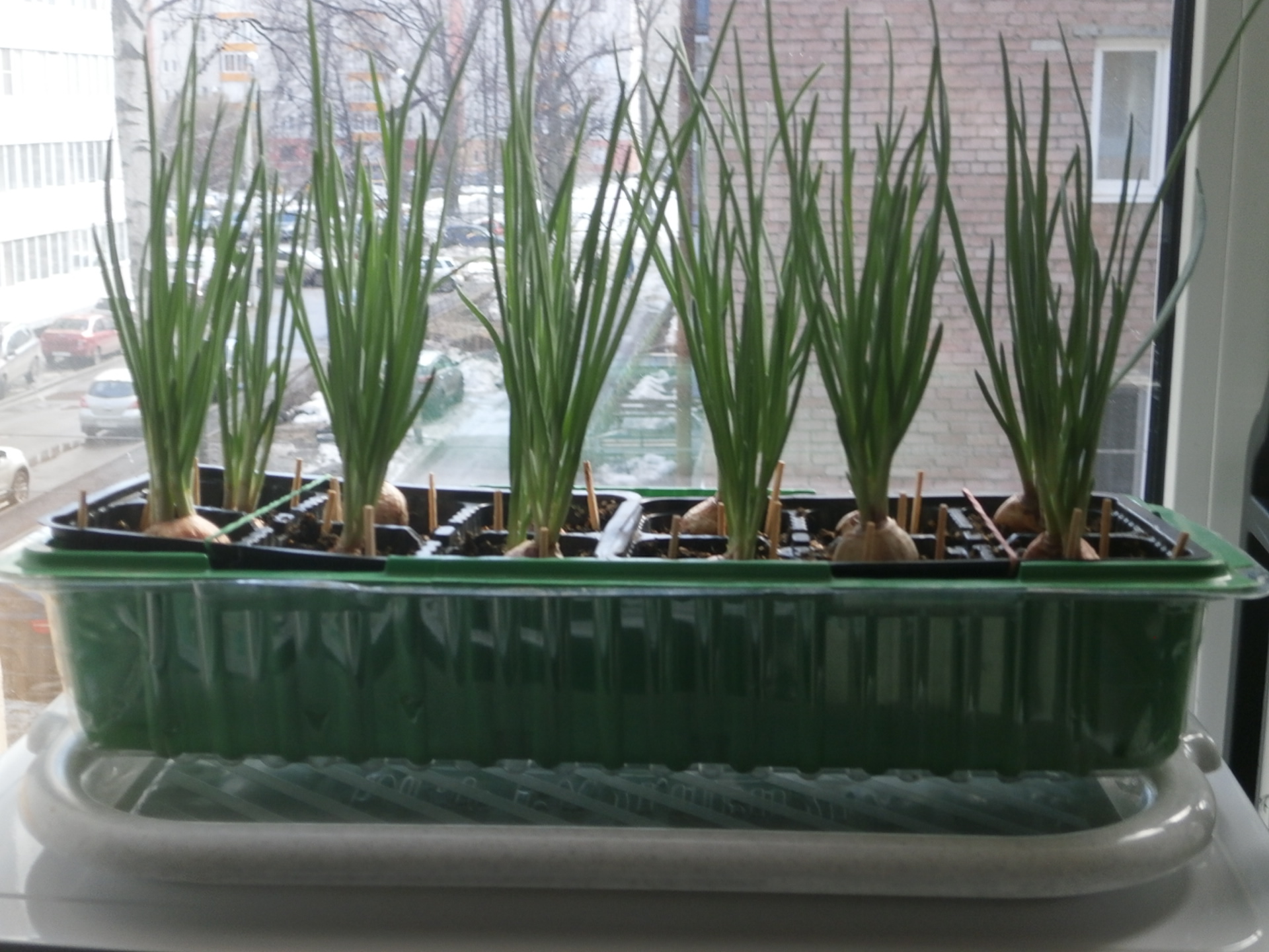 Я тогда всё же купила лук и бабульки на рынке. Вырос отличный лук. И вот я, чтобы уберечь его от трипса, некоторое время держала в прохладном месте. Перед посадкой прогрела, но что-то не задалось... Когда лучок начал отрастать и куститься - оказался весь со стрелками !!!