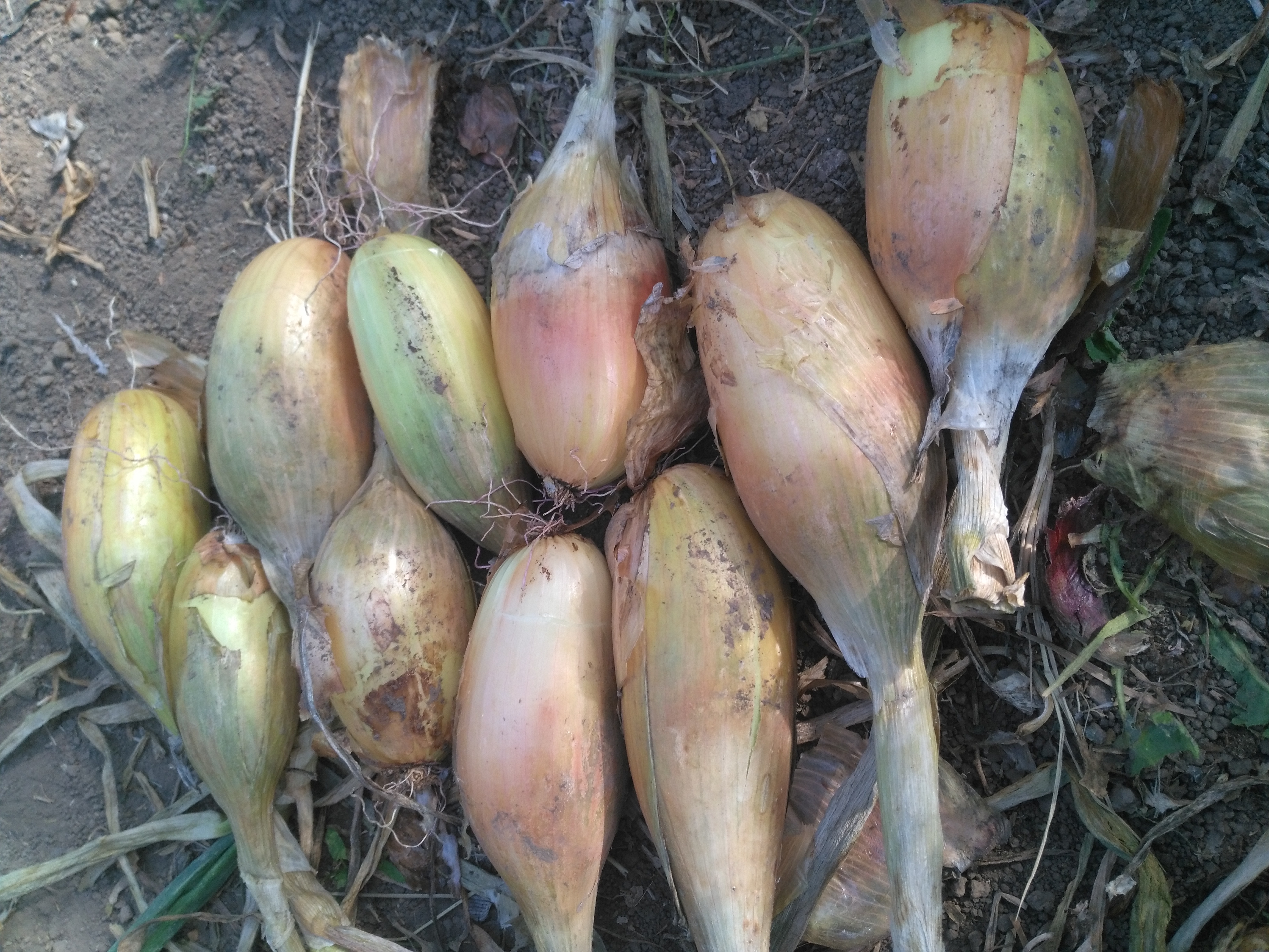 Чтобы как-то исправить ситуацию и в качестве эксперимента (чего уж теперь) стрелки обламывала. Некоторые луковки выросли отличными и крупными, а основной объём - мелковат.