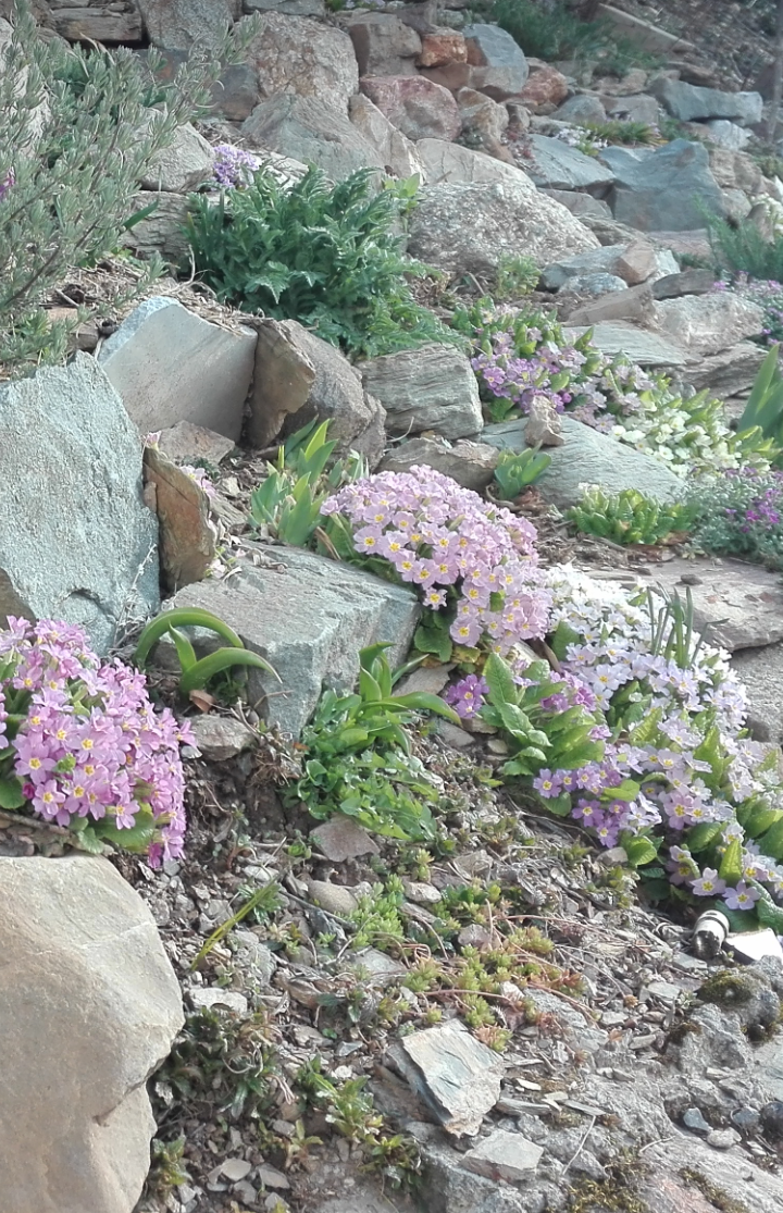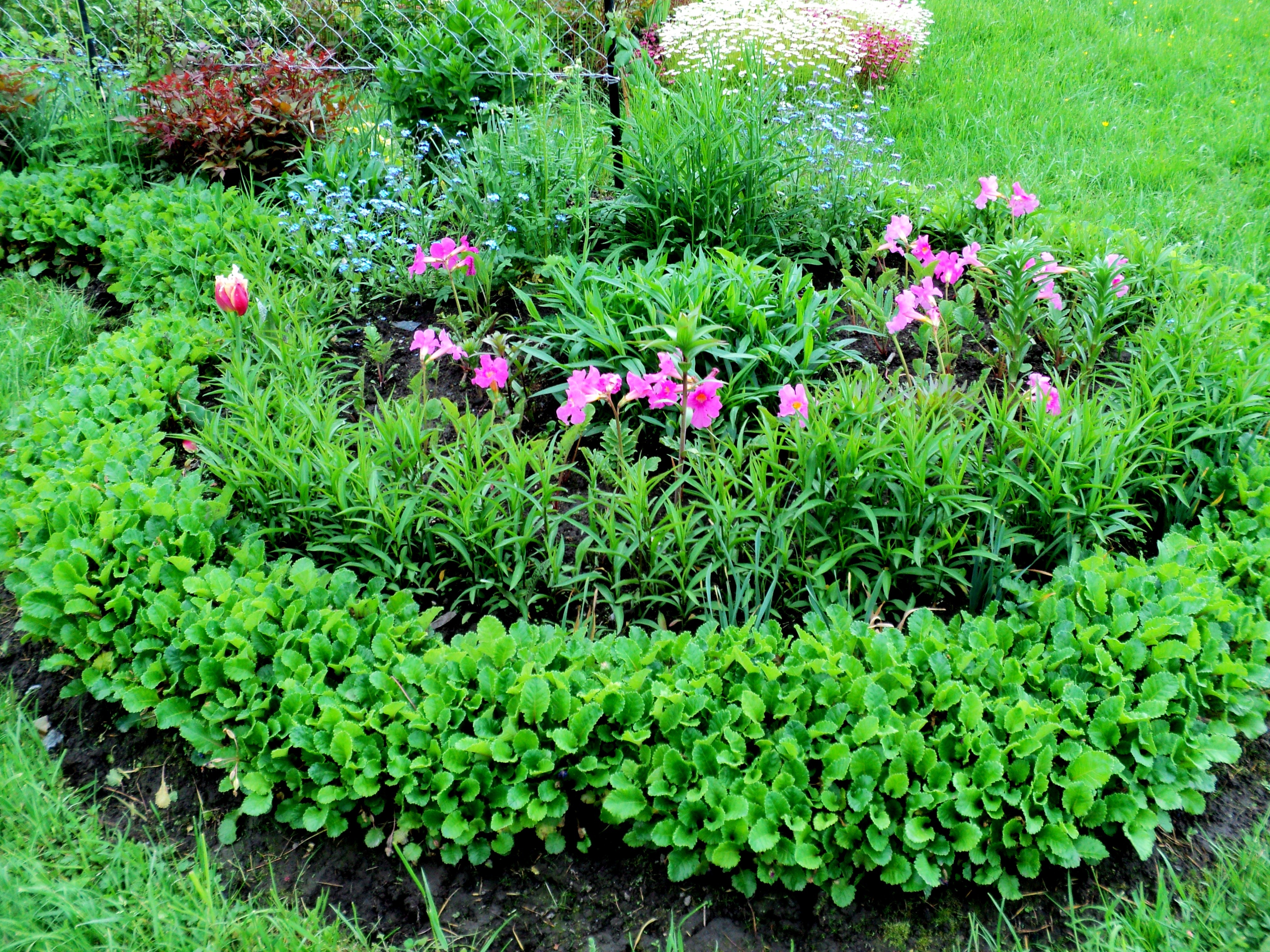 Из белой примулы немного хлопотнее - чаще равнять край приходится. А вот бордюр из примулы Зибольда хорош ещё и тем, что листья после цветения пропадаю и можно по нему посадить однолетники. Можно просто посеять бархатцы или календулу (бывают красивые махровые сорта)