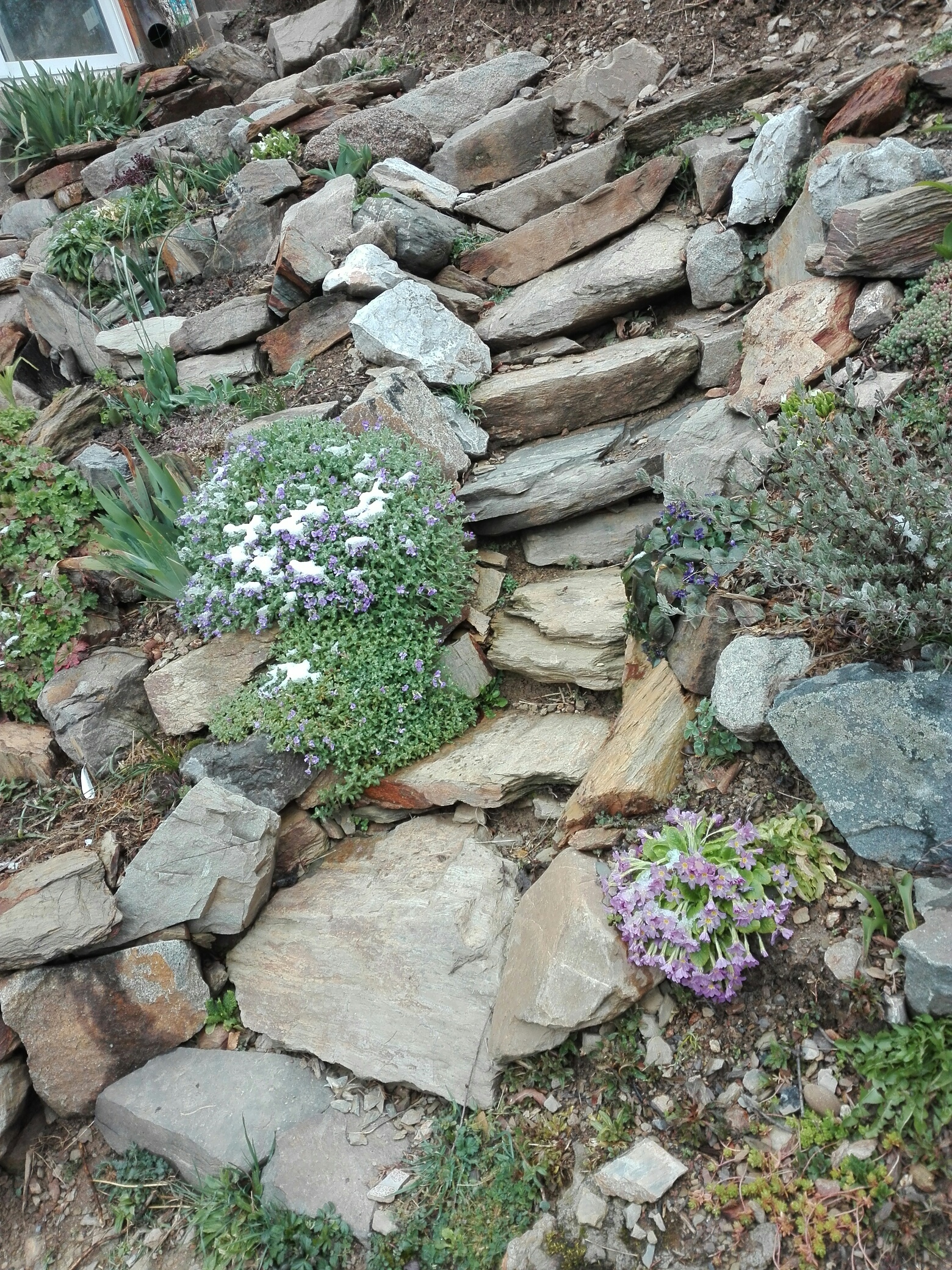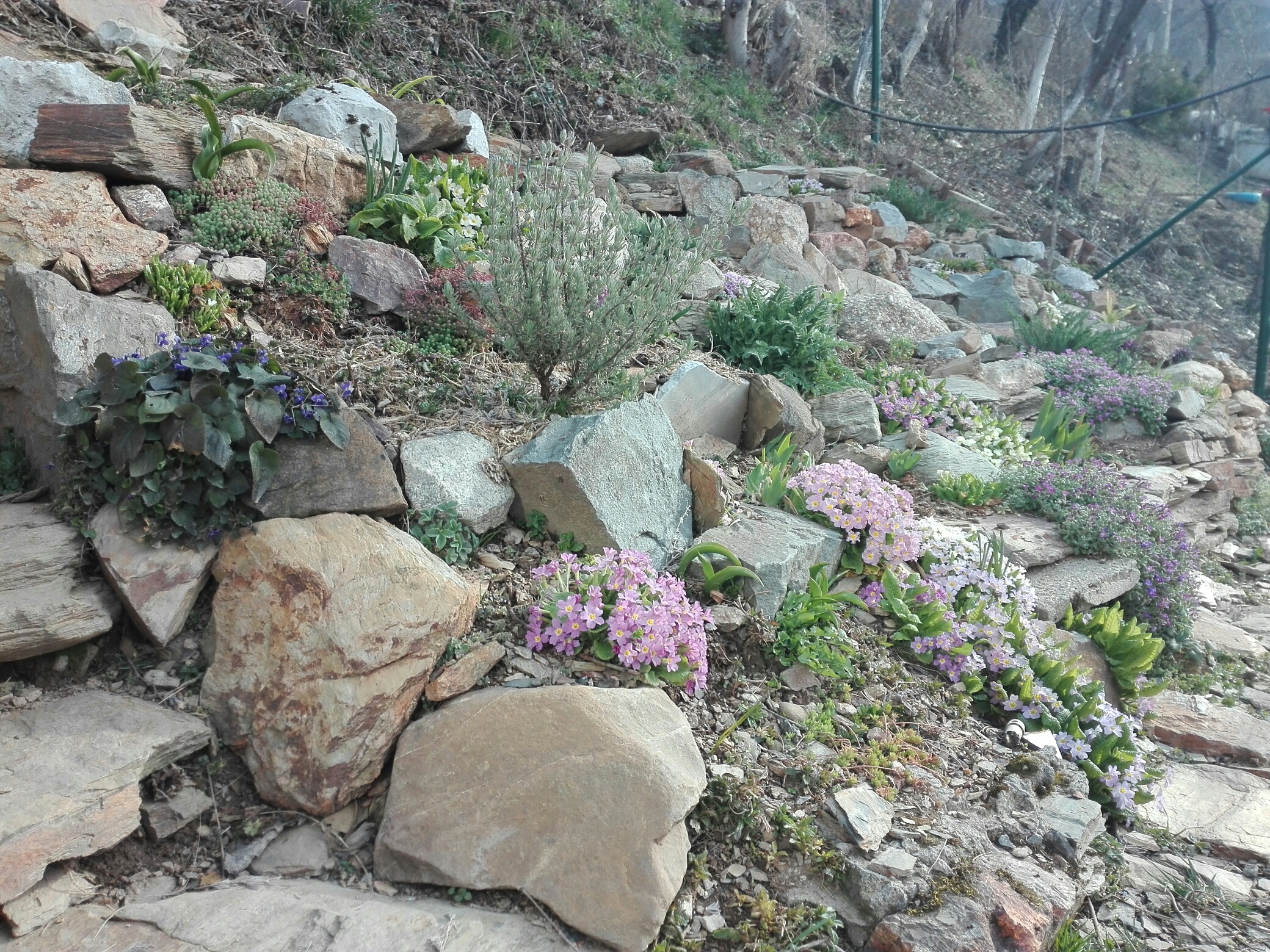 Отцвели и крокусы, и ирисы сетчатые. Сейчас время примул, лесных фиалок и абриетта входит в силу, тюльпаны ещё готовятся, нарциссы вслед за ними
