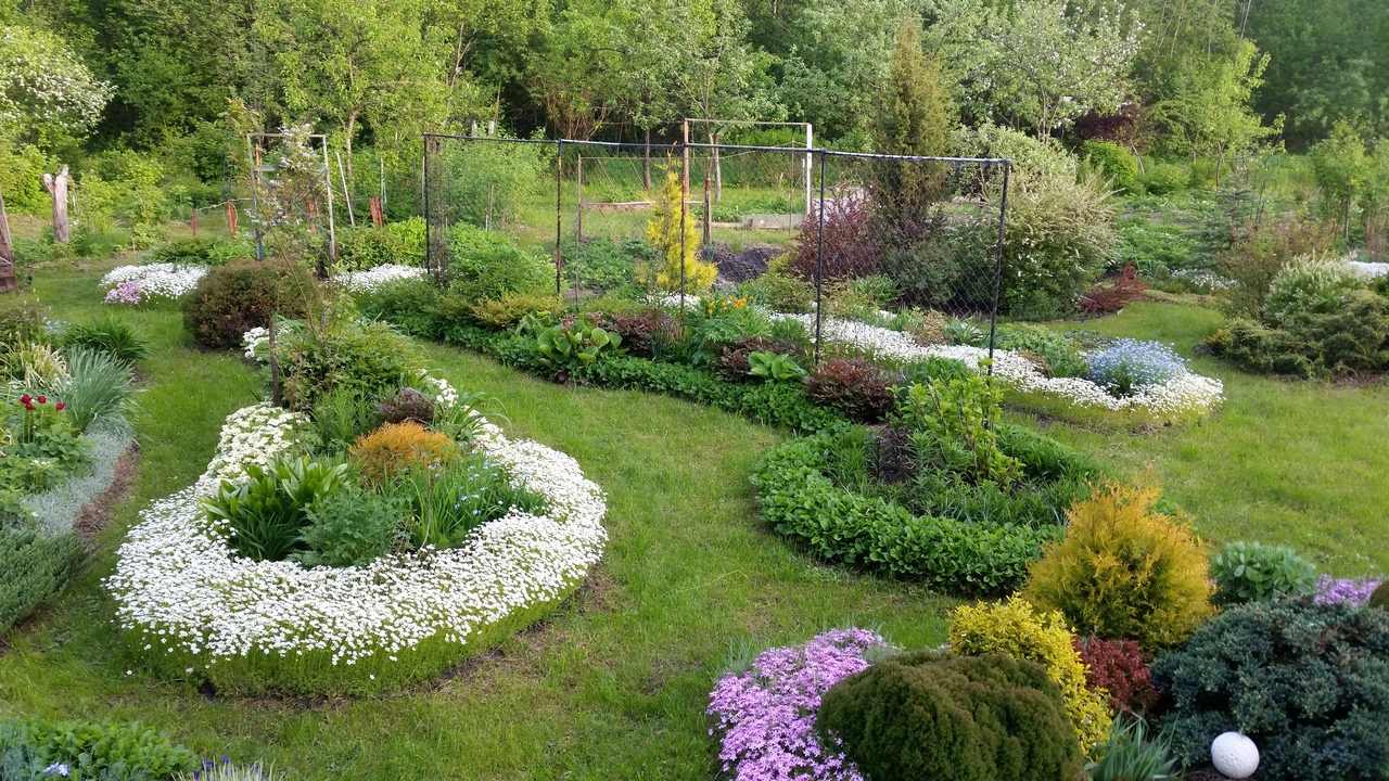 Дизайн участка. Цветники, живые изгороди, газоны, перголы.