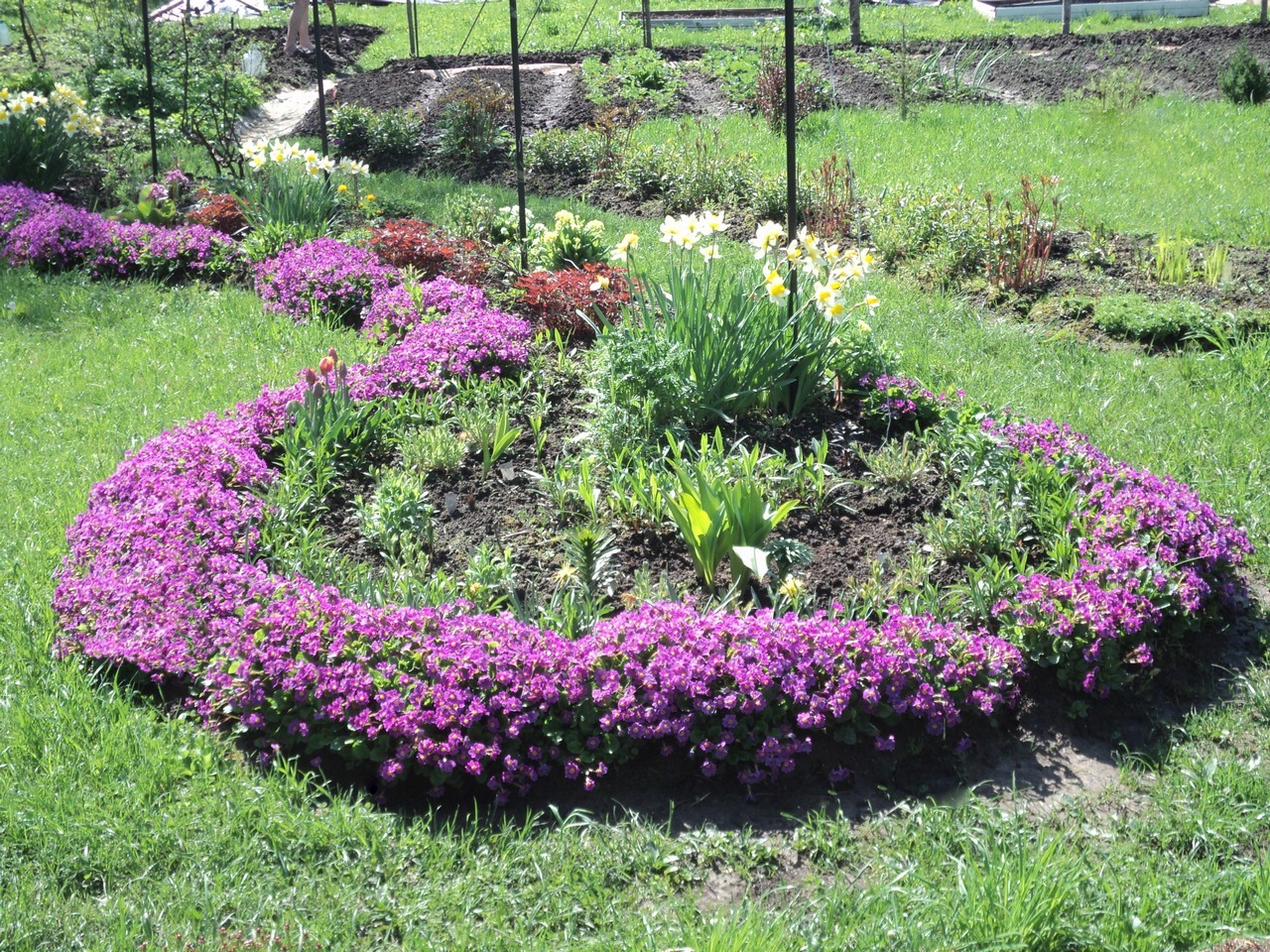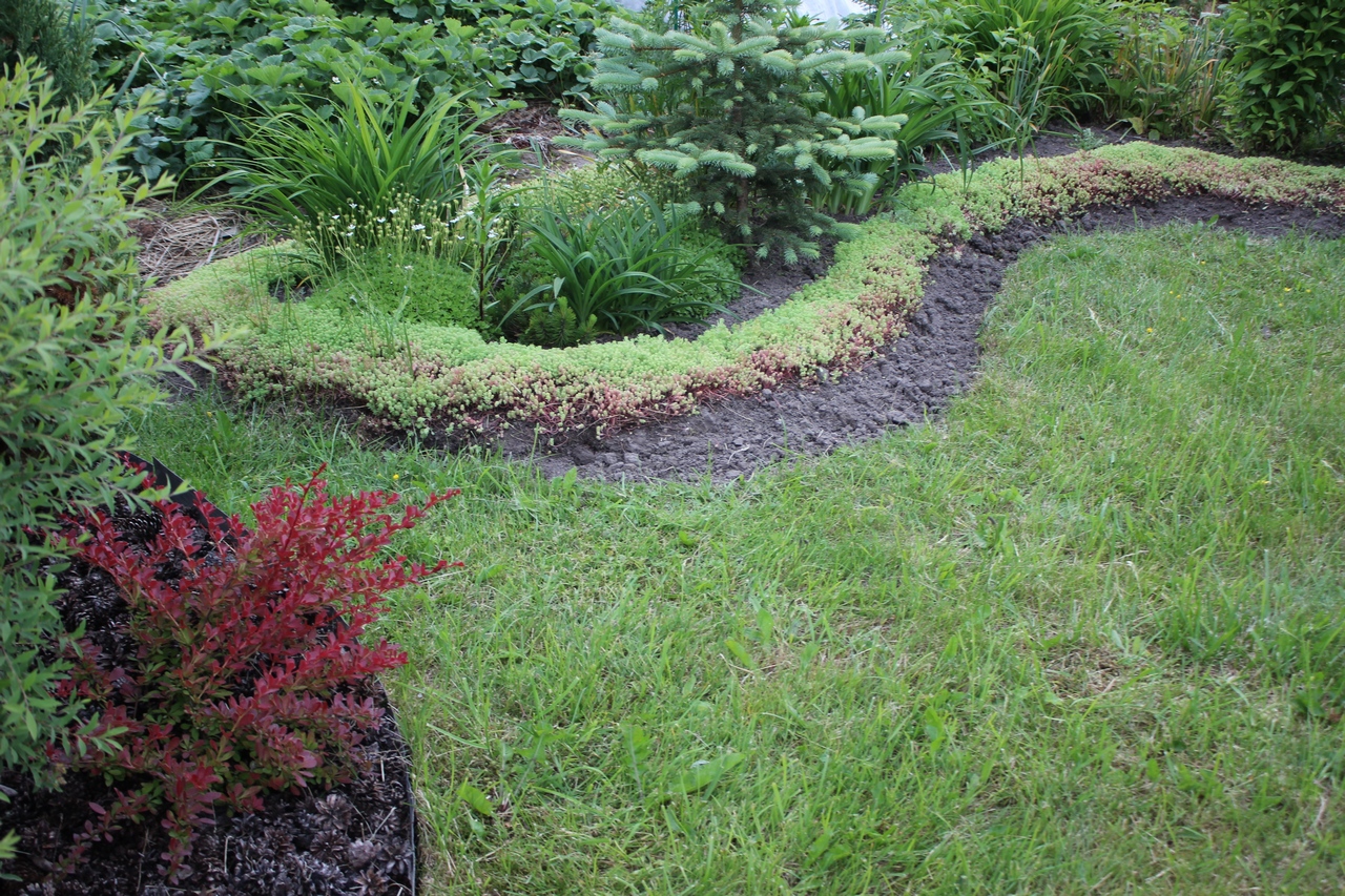 Самым, пожалуй хлопотным у меня является бордюр из очитка. Нужно его кардинально урезать в начале лета (конец мая - начало июня) и убирать цветочки, чтобы не насеивался