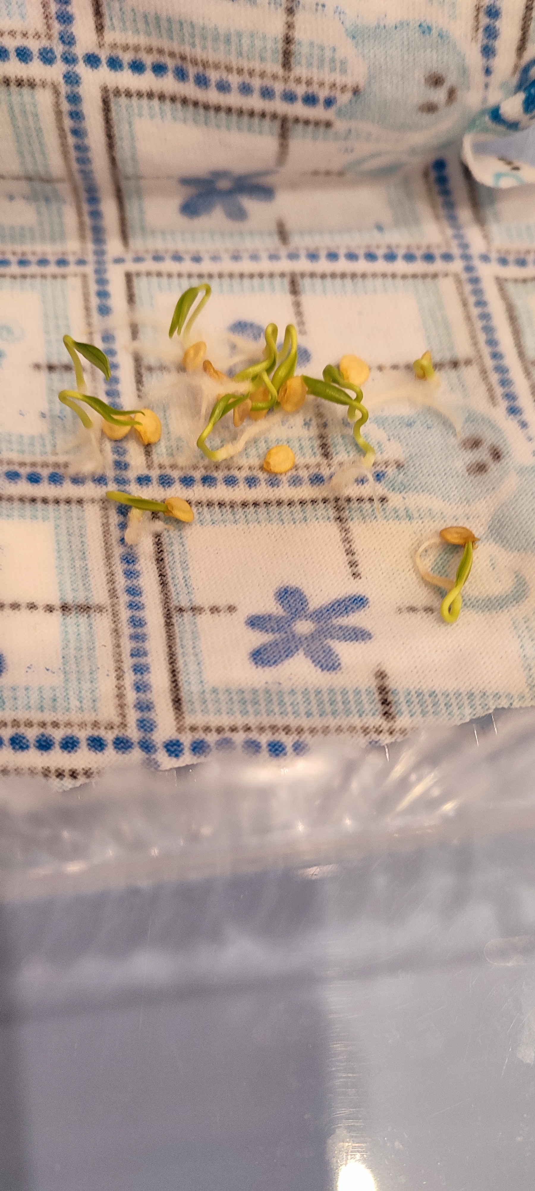 Люба,из 15 штучек только 4 взошли после того как проклюнулись.Семена она сама собирала с перца Леся . Сбор 2022 года,свежие.