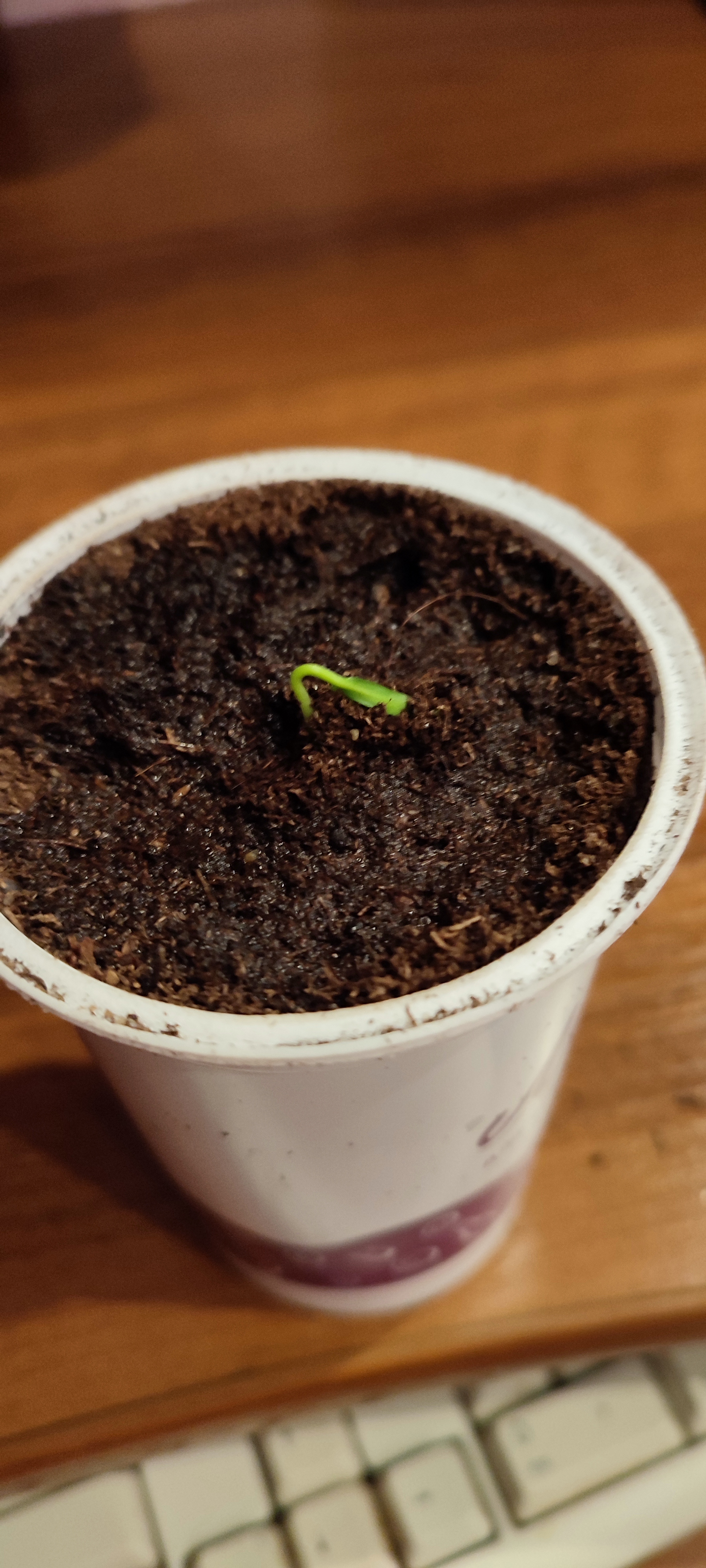 Взошли только два растения и начали вести себя странно. На первом росли только семядоли, поняла, что не хочу ждать пробуждения пасынков, выкинула. А второй был поздний совсем, и также начал растить семядоли, правда побыстрее дал пасынок, смотрю на него, нужен или нет!?