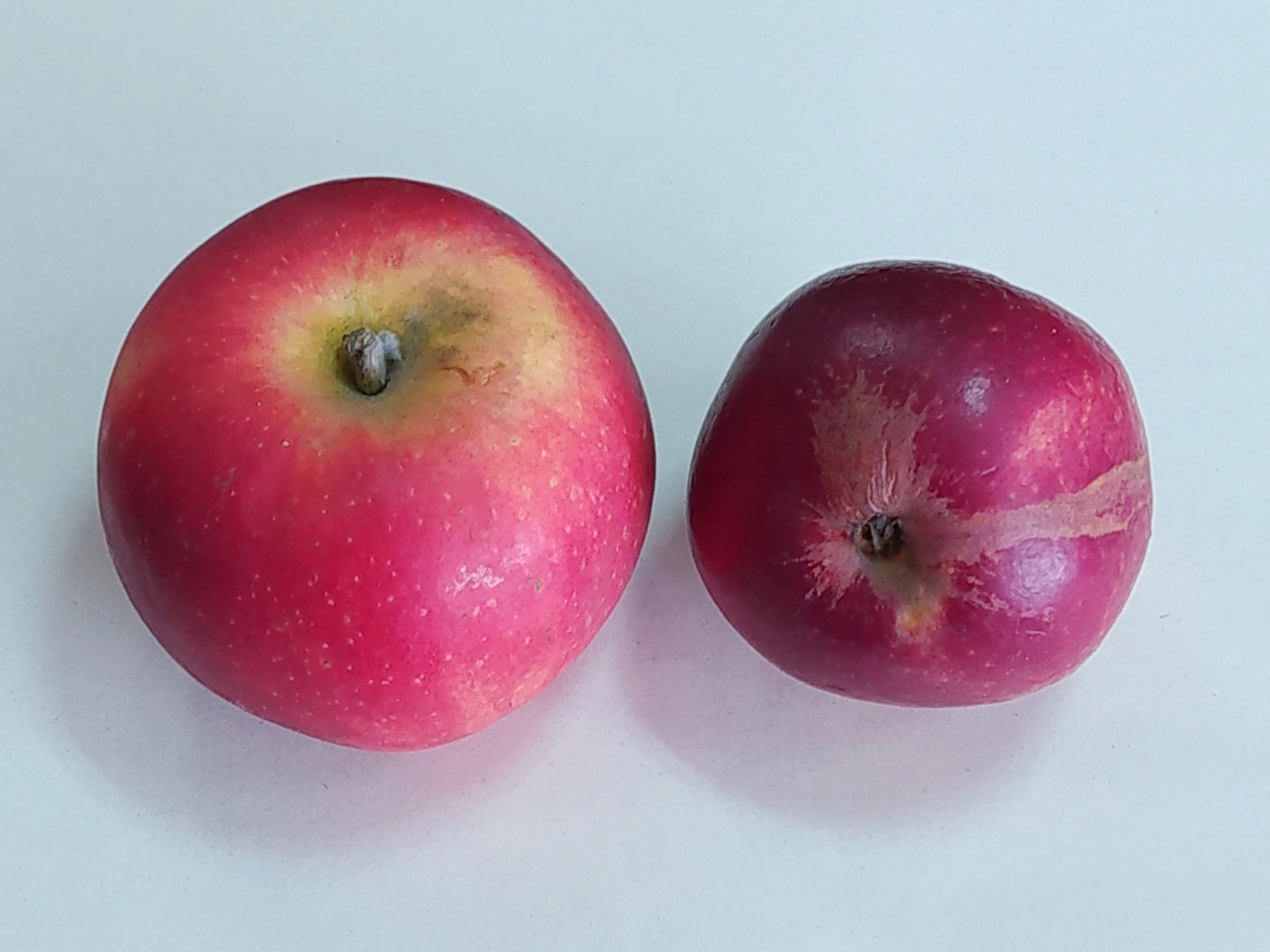 Сегодня захотелось сравнить вкусы краснокожих яблок. Под руку попались польский Редкрофт и итальянский Моди. Внешний вид у обоих вполне приличный, кожица без заметных признаков увядания.