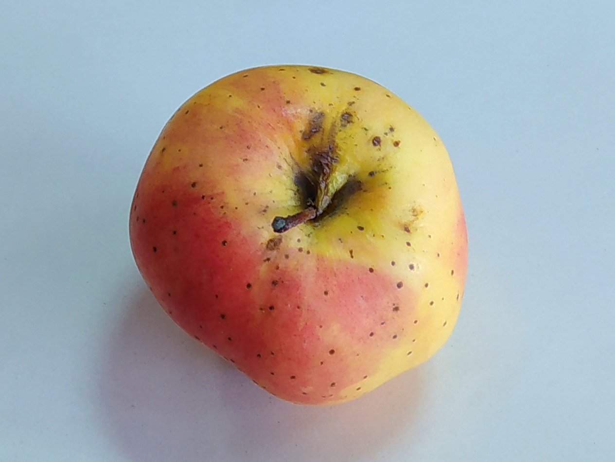 Ранее уже отмечал, что многие сорта, производные от Голдена, в моих условиях подвержены поражению Горькой гнилью (англ. - Bitter rot of apple). В отличие от Горькой ямчатости, которая является физиологическим расстройством, вызванным дефицитом кальция в клетках плода, Горькая (чечевичковая, глеоспориозная) гниль - это заболевание, вызываемое несколькими видами грибков из комплексов Colletotrichum acutatum и Colletotrichum gloeosporioides. Самым неприятным является то, что разлет спор этой инфекции происходит в конце лета – начале осени, когда многие садоводы уже готовятся к сбору урожая и прекращают все обработки. Поражаются даже сорта, иммунные к парше на генном уровне. Споры обычно проникают в плоды через чечевички – особые образования на кожице в виде мелких бугорков, служащие для газообмена. Места расположения чечевичкек становятся очагами гнили, что хорошо видно на фото. Из этих трех сортов пока не встретил данной проблемы только у Опала. Луна и Орион определенно нуждаются в поздних обработках фунгицидами.