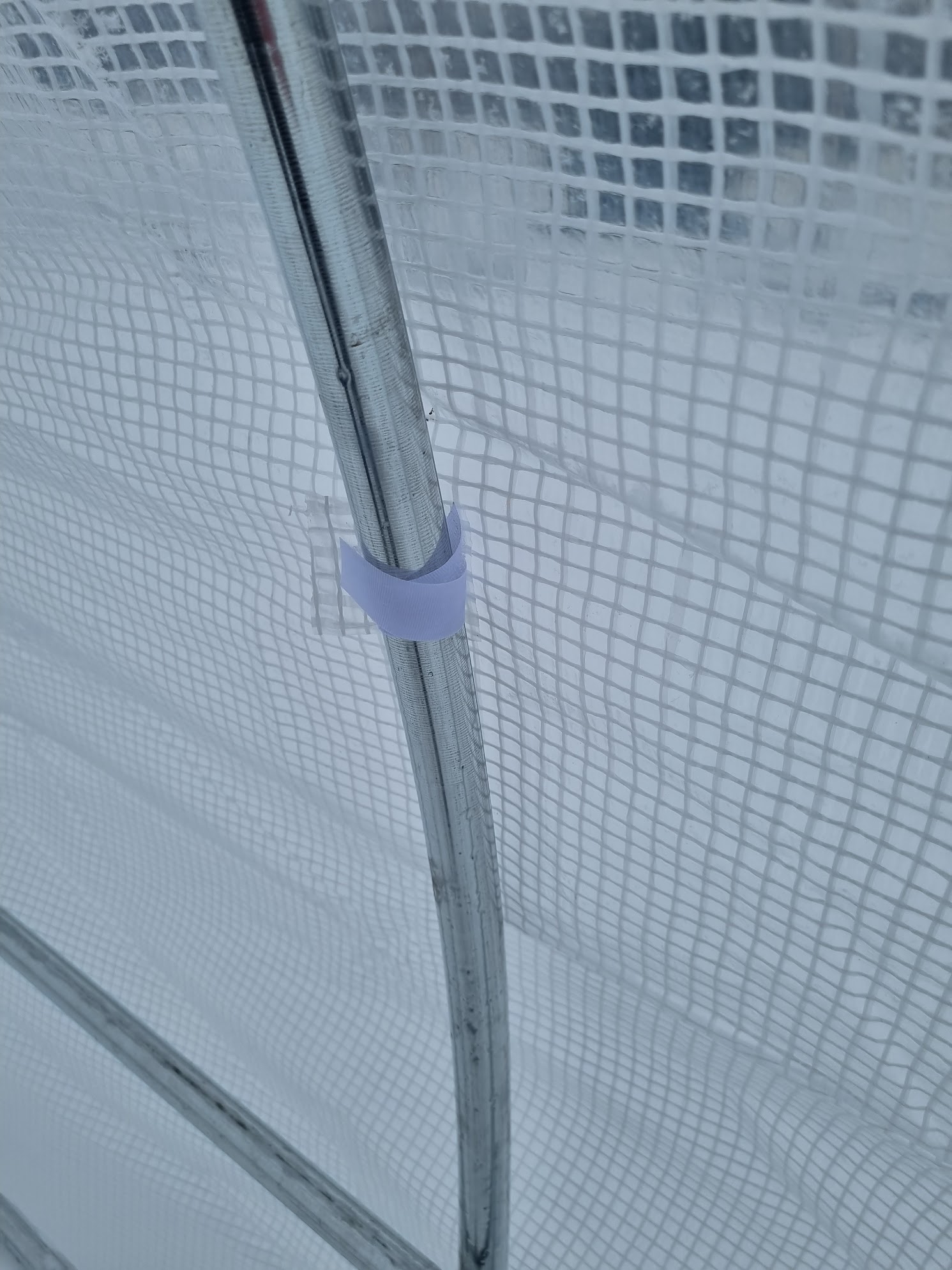 Тент на липучке. Вы представьте, офисные зажимы знаете? Я самым крупным зажимом препил пленку к дуге. На каждой дуге по три зажима, на крайних вообще много.
