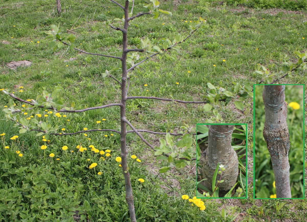 По сравнению с айвой, такая конструкция подвоя груши не требует опоры.