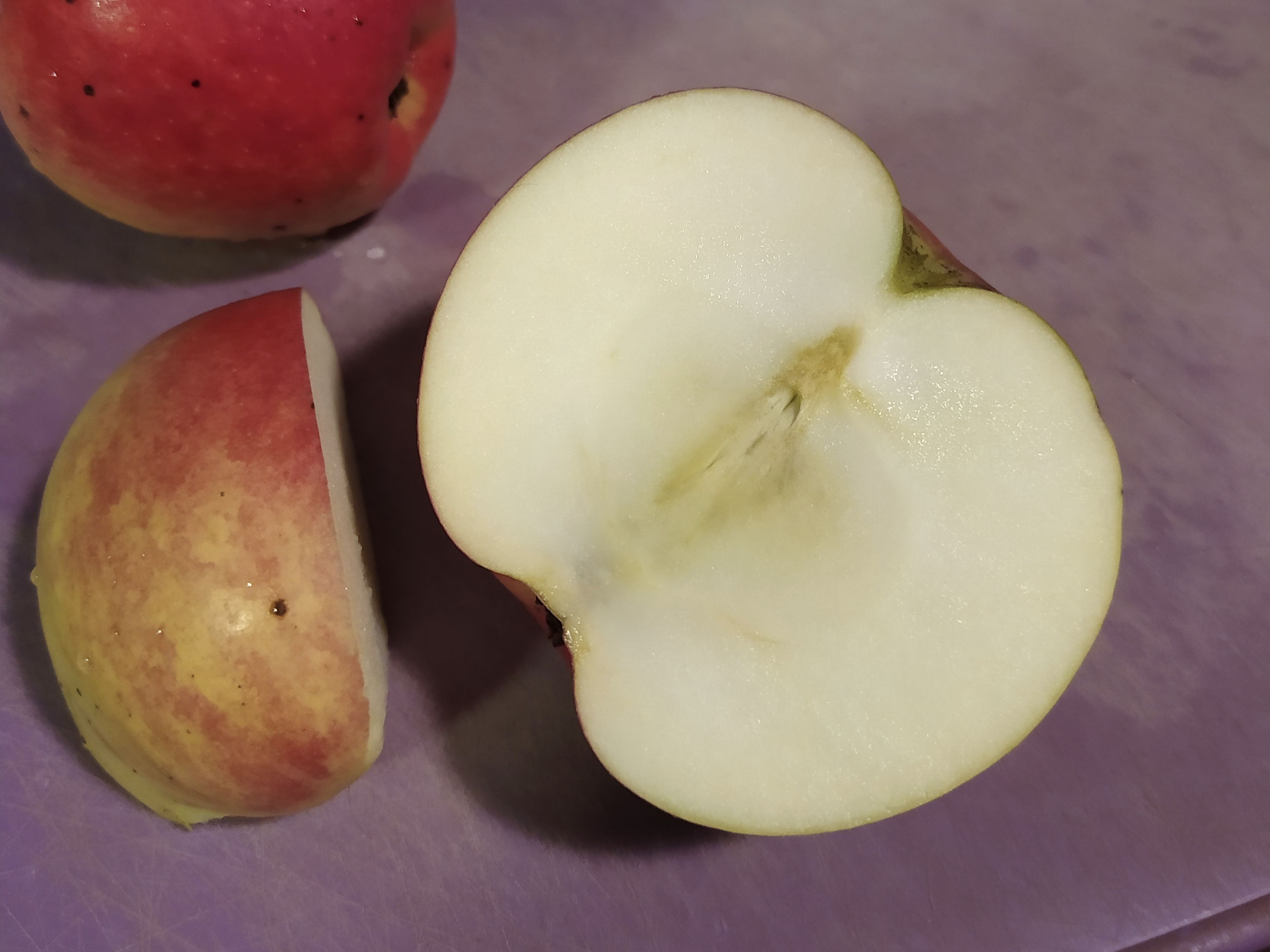 Сравнивая вкусы разных сортов, всегда необходимо иметь в виду конкретный период времени. Вчера заглянул в свое деревенское хранилище и обнаружил в ящике с Лиголом несколько приличных с виду плодов. Мякоть оказалась плотная, сочная, неплохо скалывается, но вкус оставляет желать лучшего. Сильно сместился в сторону травянистого, явно уступает Ханикриспу. Хотя зимой всё было ровно наоборот, Лигол можно было смело отнести к наиболее десертным сортам.