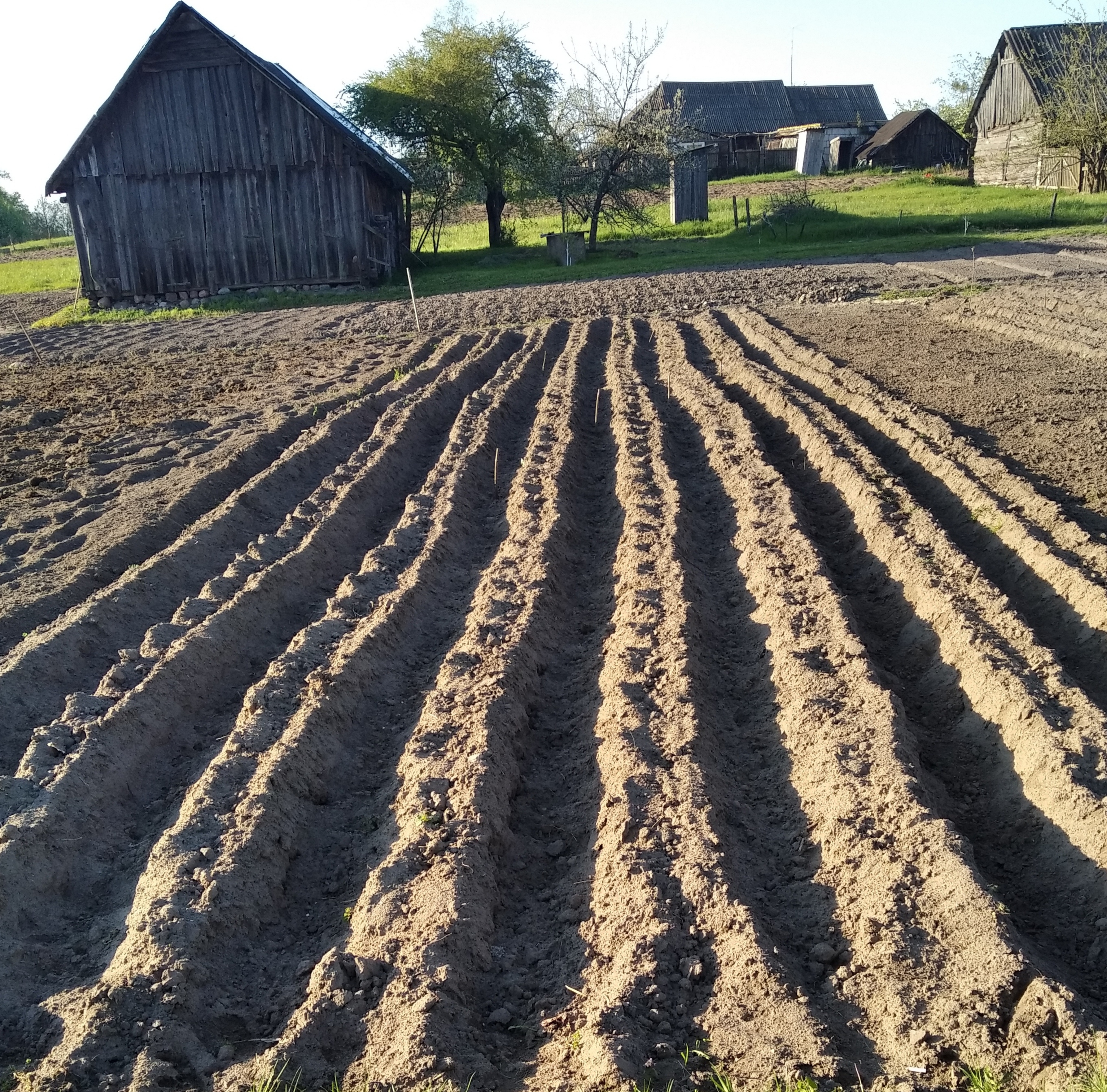 В ожидании погоды для вспашки, посадки картофеля. Земля подсыхает на глазах, можно ходить , ботинки не вязнут. У нас еще прохладно, ожидаются небольшие минуса, ориентировочно - прогнозируемый срок вспашки/посадки 16 - 21 мая. Вспаханная по осени земля приятно радует глаз (исходные данные лучше чем в прошлом году).