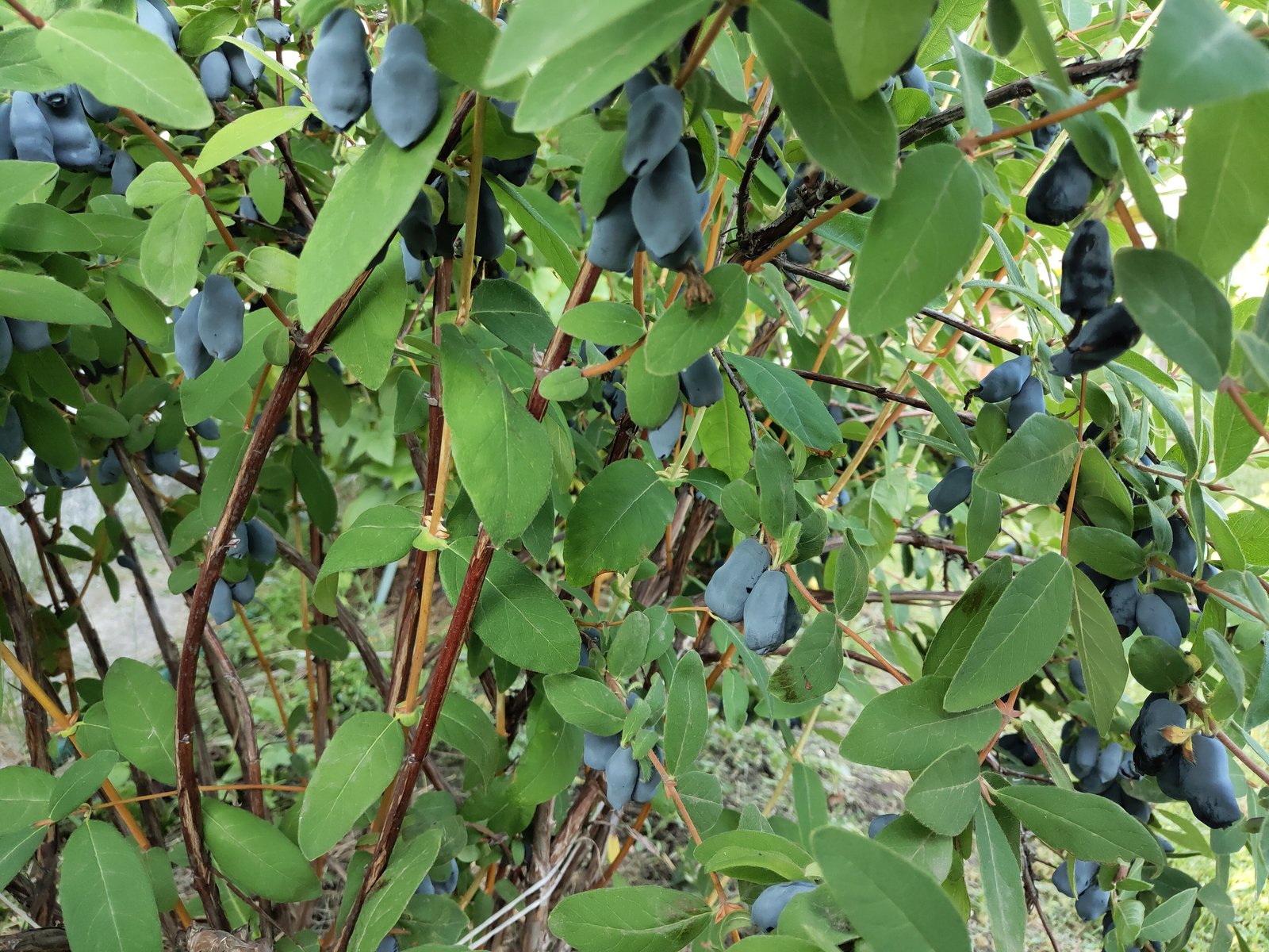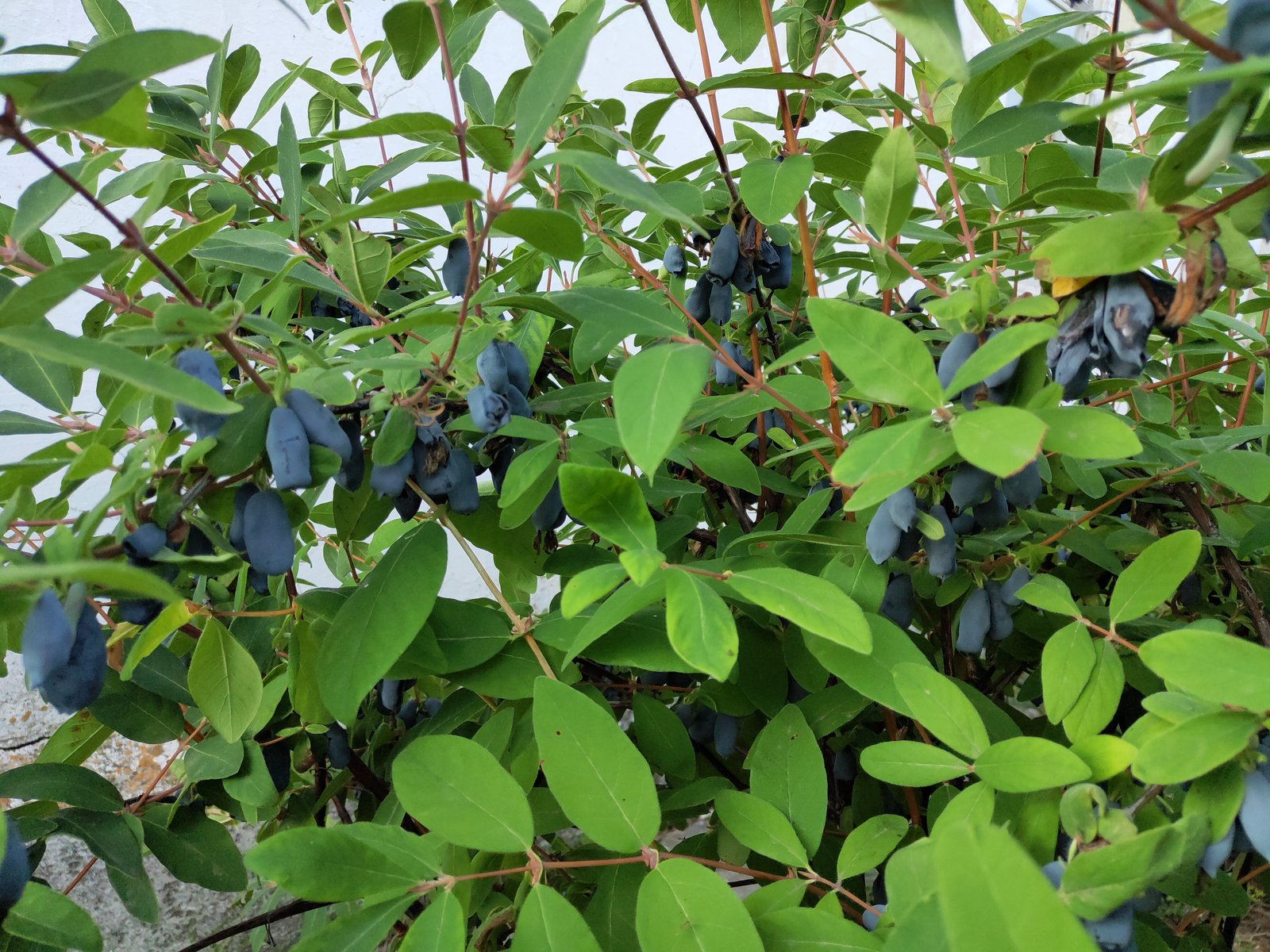 Собрали Бьюти и Близзард. Ещё висят Бист и Аврора, ну и Сердце Гиганта с Голубым Сокровищем. Все таки здорово, что удачной подборкой сортов сезон жимолости можно растянуть с середины мая до середины июля.