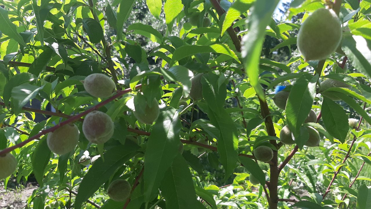 Почему-то сравнительно мало завязей у сорта Посол Мира (деревце выше 2м стало), но судя по их размерам в конце июня , плоды будут далеко за 200 гр (в прошлом году пробный урожай двухлетка по 160+ гр вытянула).
