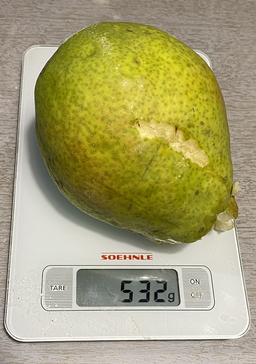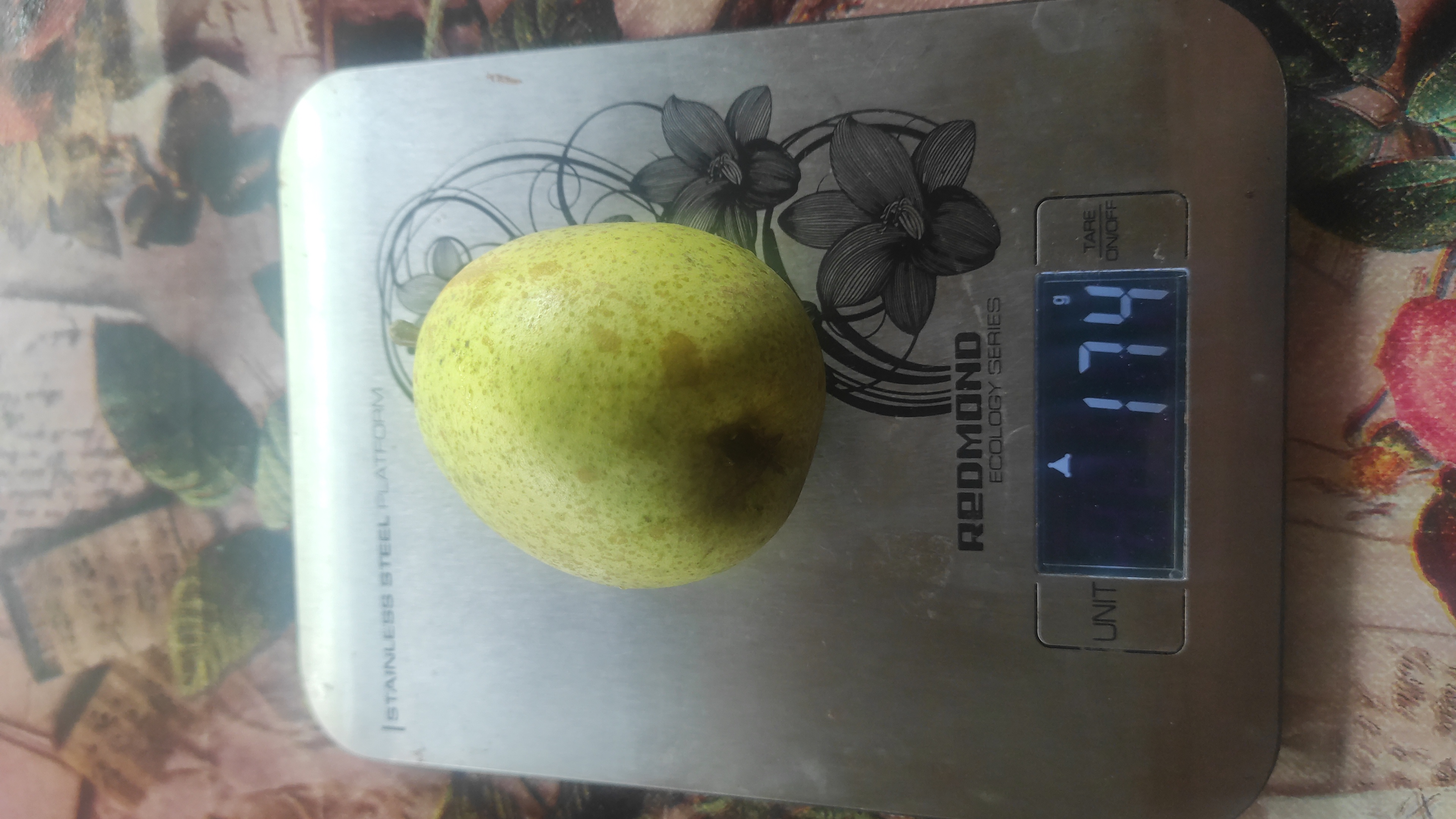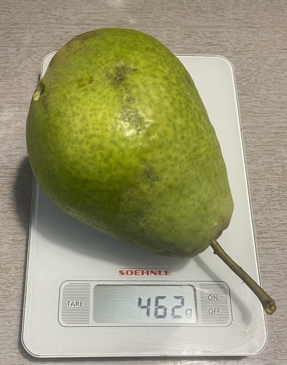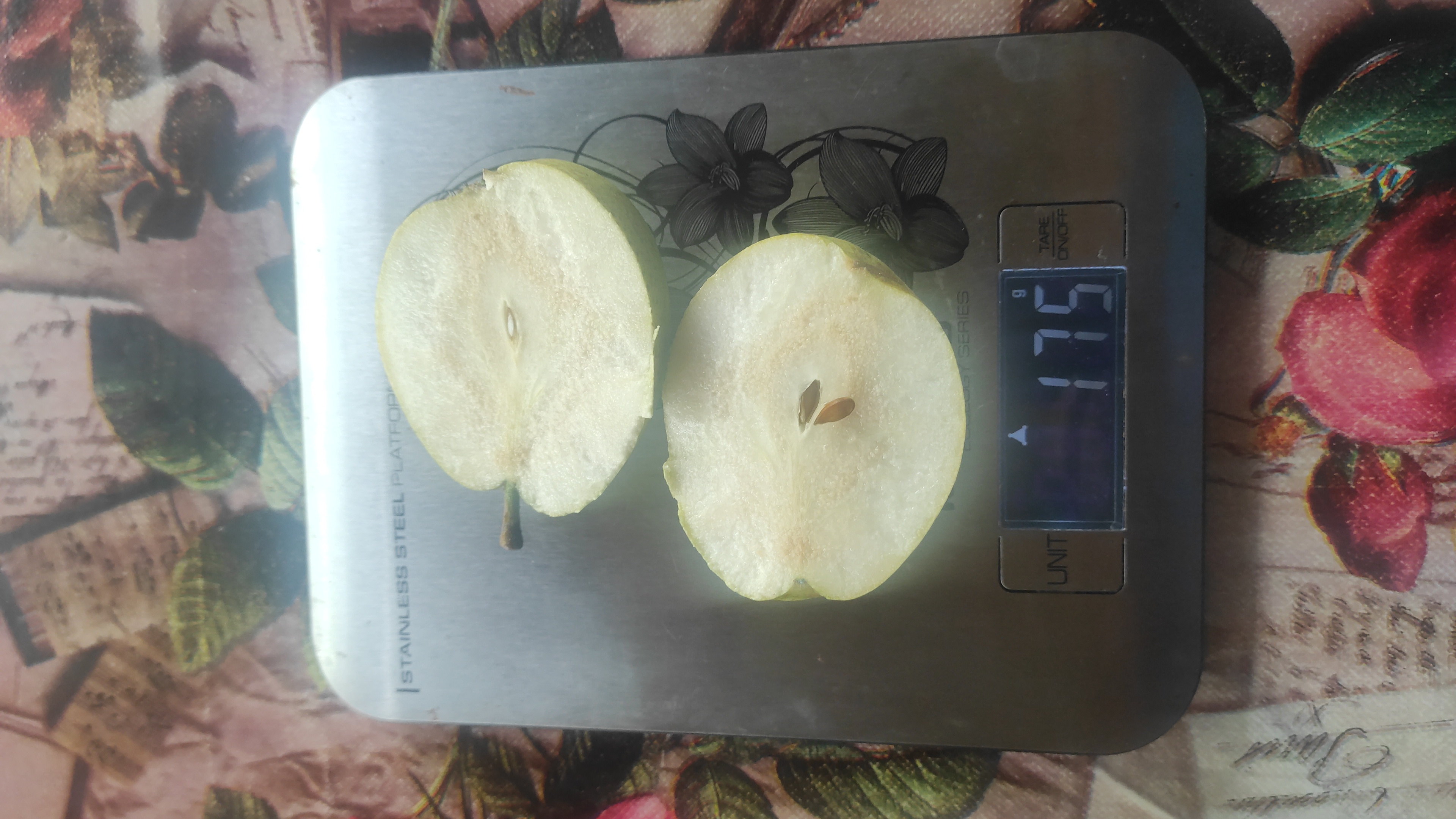 Осенний Великан. В моих условиях плодоносит третий год подряд, в прививках на Памяти Анзина (семенной подвой) крупноплодным не является, примерно 150- 200 грамм. Историю и какое либо описание в литературе не нашел, по моим наблюдениям зимостойкость скорее всего равна Просто Марии, урожайность хорошая, вредителями бьется на раз, без обработок выращивать на мой взгляд бесполезно. По моему мнению, по вкусу превосходит Велесу, Брянскую Красавицу, примерно на одном уровне с ПМ, сказал бы что имеет вкус европейской груши.