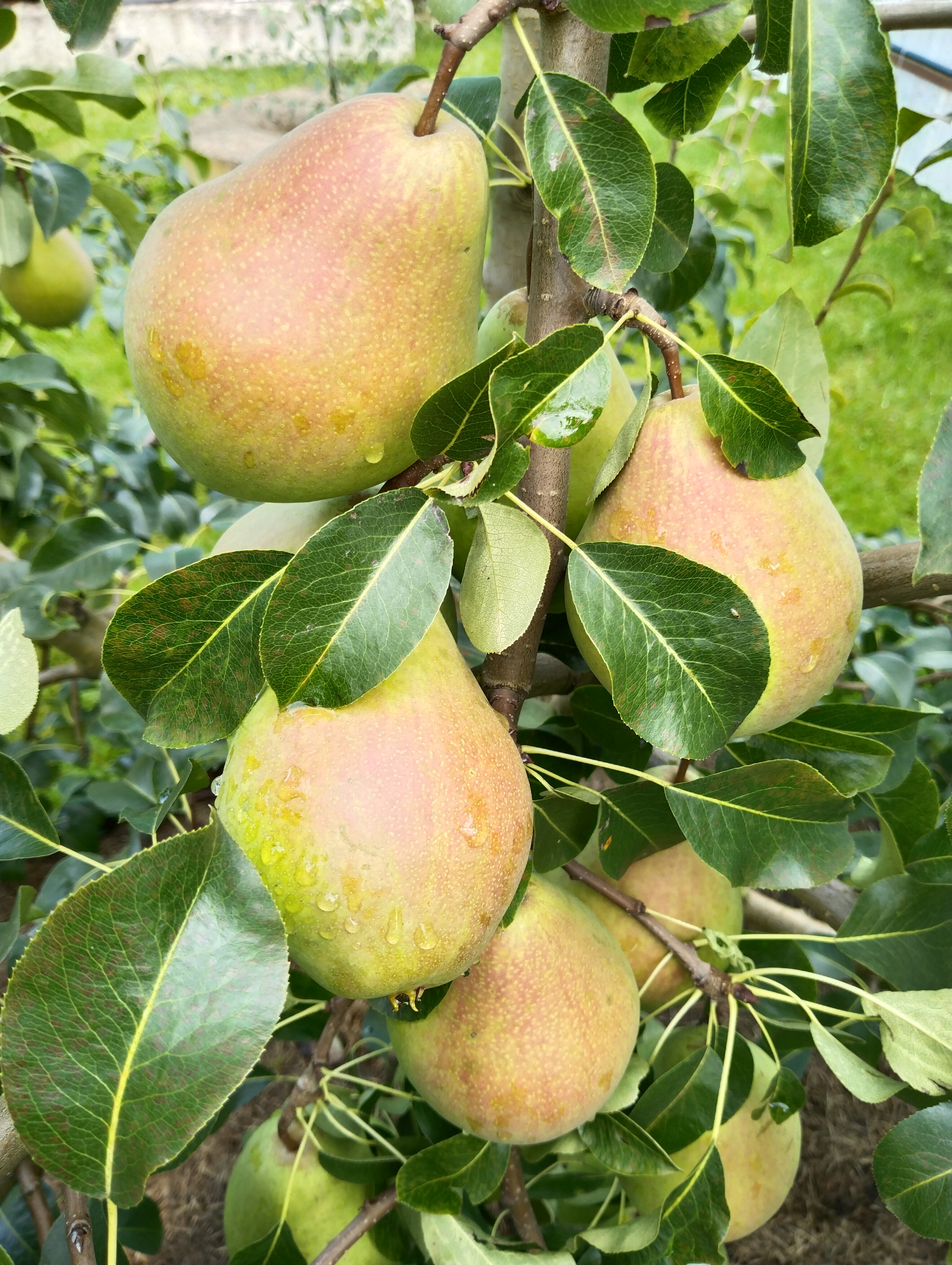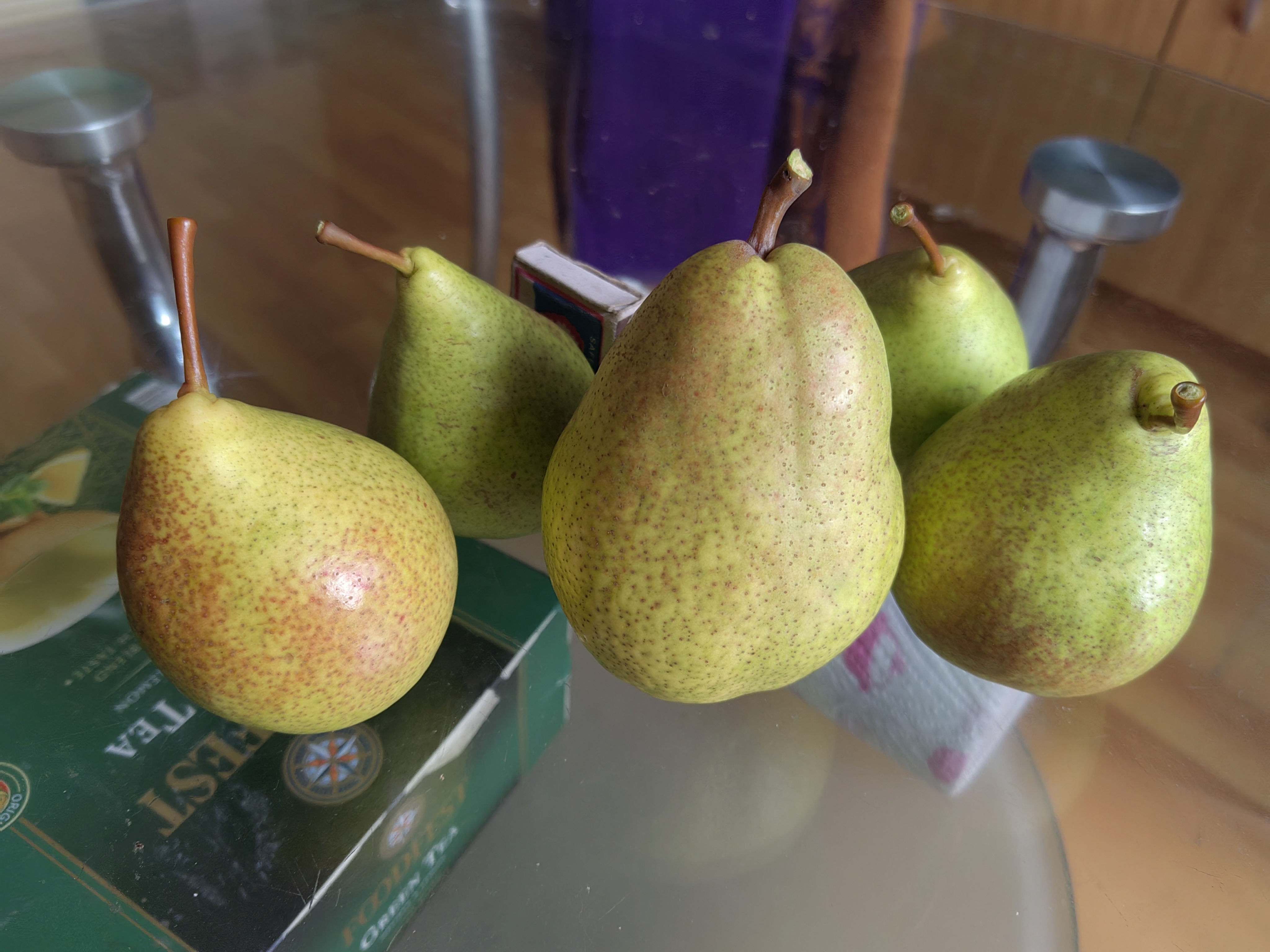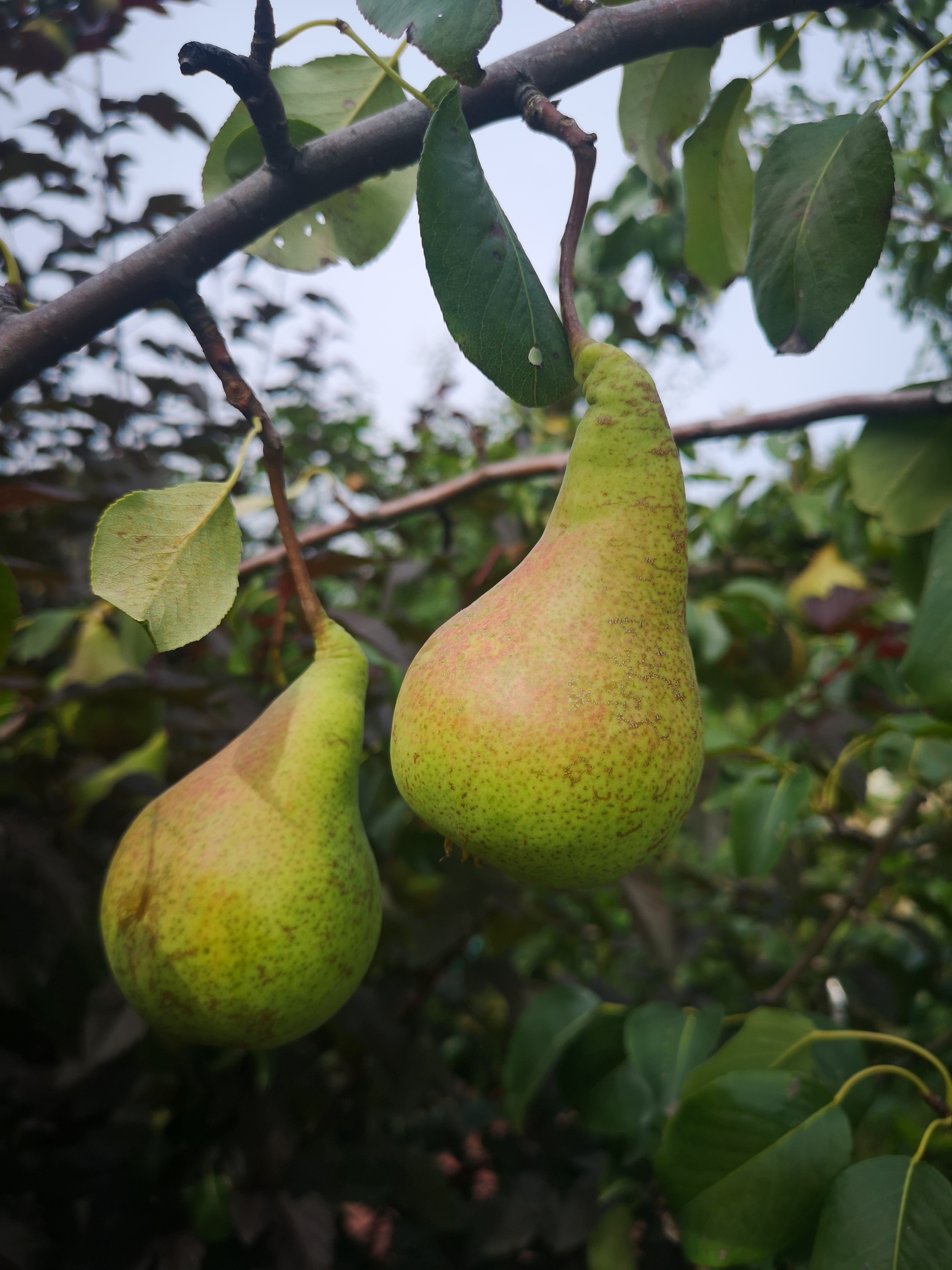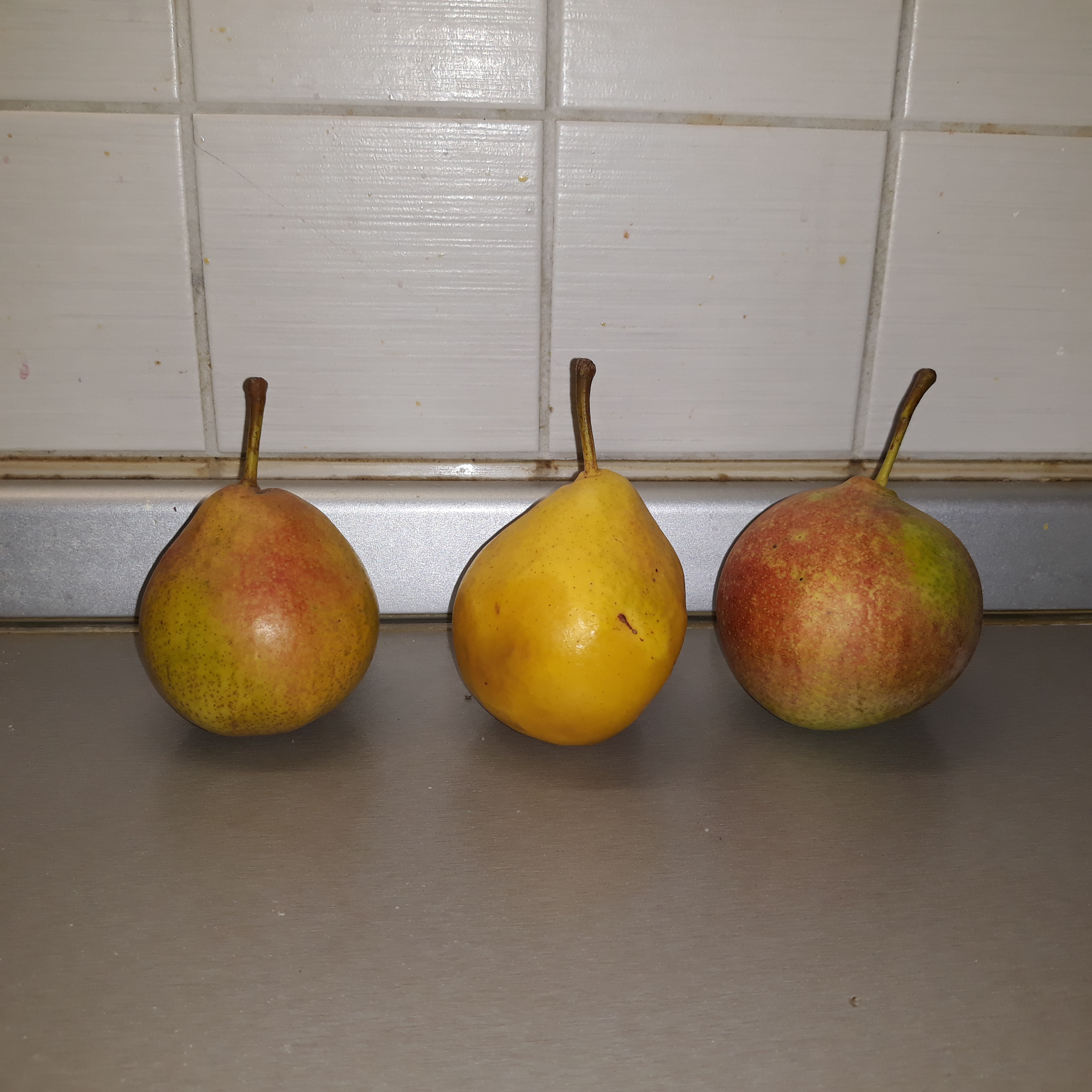 Памятная (хранится в погребе) - желтые стали слаще, но все равно менее сладкие, чем были в прошлом году. Хотя все и такую едят с удовольствием- не сильно насыщенный сладкий вкус и отсутствие терпкости в кожуре позволяет съесть за раз не одну грушу. Оставила немного на дереве и попробовала дозревшими - не заметила отличий во вкусе с лежащими в погребе.