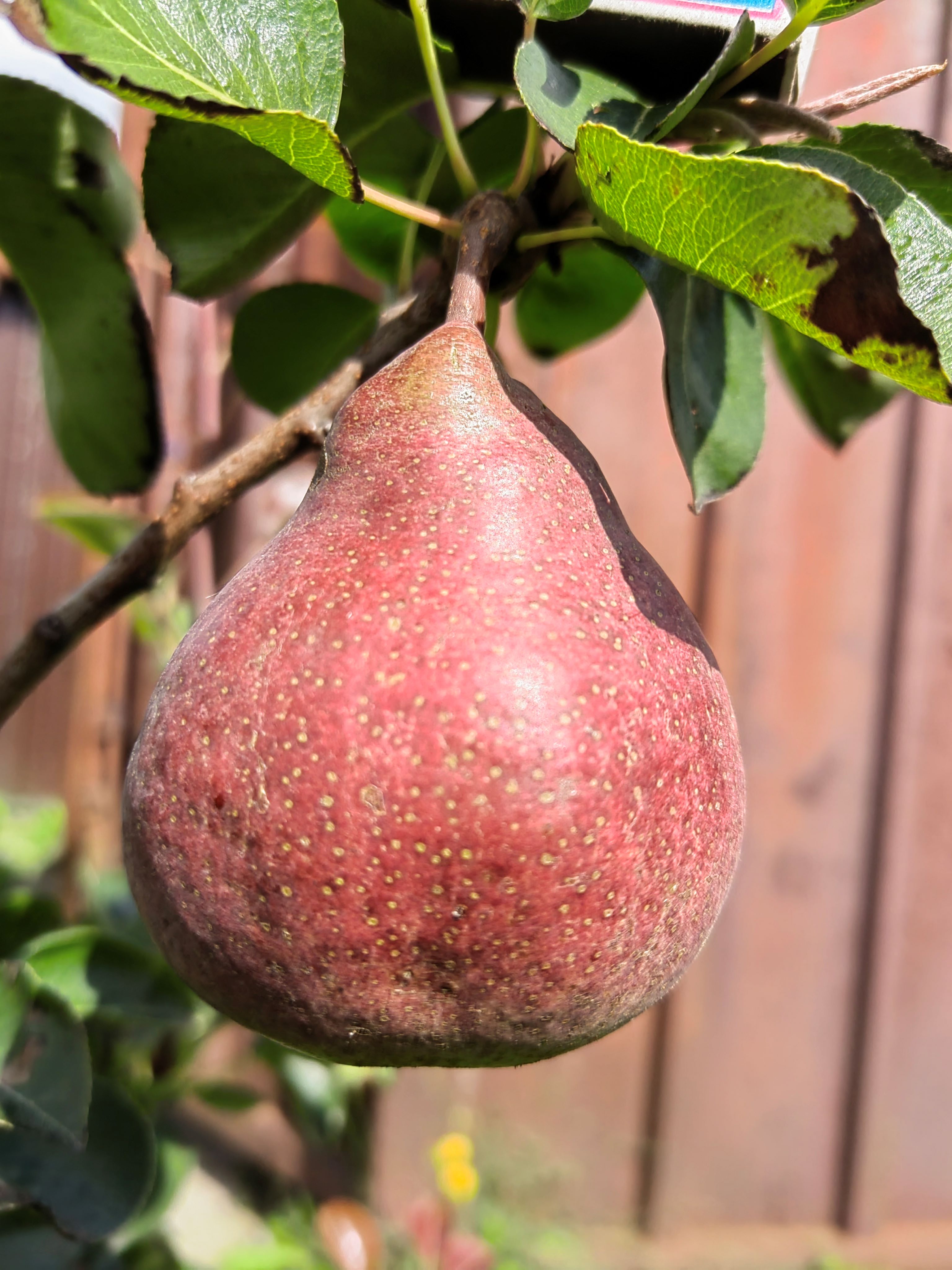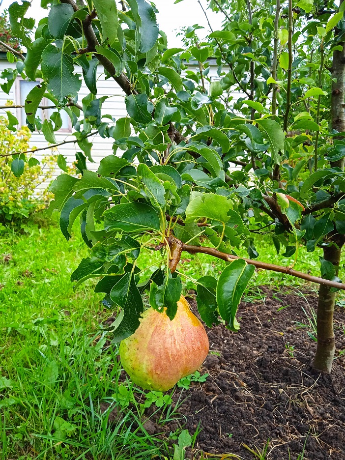 Еще про груши. АР у меня не пошла, зиму хорошо переносит, но перед майскими заморозками капитулирует. На второй год удалил. ПМ тоже несладко приходится, на 2 год после посадки в 21 году пришлось удалить проводник. Своеобразная груша, кто-то здесь правильно подметил, что ветки растут извиваясь, как змея. Да и чашей расти не очень хочет, приходится прилагать усилия в формировке. Много волчков при минимальной обрезке, да и клещ ее одолевает. В этом году прилично зацвела, но не завязала. В июне было повторное цветение!? Цветы были уже меньше по размеру, на удивление появились маленькие грушки на длинной плодоножке. Выросли до размера крупного фундука, после чего почернели вместе с плодоножкой, все удалил. Рядом с ПМ в том же 20 году посадил ПЯ, у нее пока все более-менее в порядке. Вымахала уже под 3 метра, в этом году зацвела и подарила 4 груши. Пока не пробовал, 2 лежат в холодильнике, а 2 еще висят.