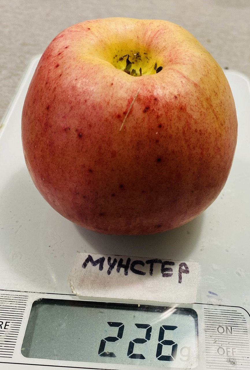 МУНСТЕР - созрел 5 октября. Мякоть плотная, ниже средней сочности. Вкус сладкий, простой с парфюмерным привкусом. Сахар 13,0’ Brix. Д.о. 4,3.