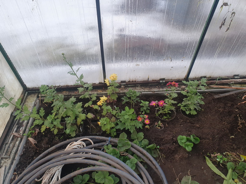 . Там и клемики с флоксами укоренившимися в горшках, клубника. В земле многое что посажено... В земле, уверена, что перезимует всё. А вот в горшках... Может, лучше флоксы с клемиками на улицу выставить? Растут у меня под укрытием клубничка и пару декоративных кустиков...