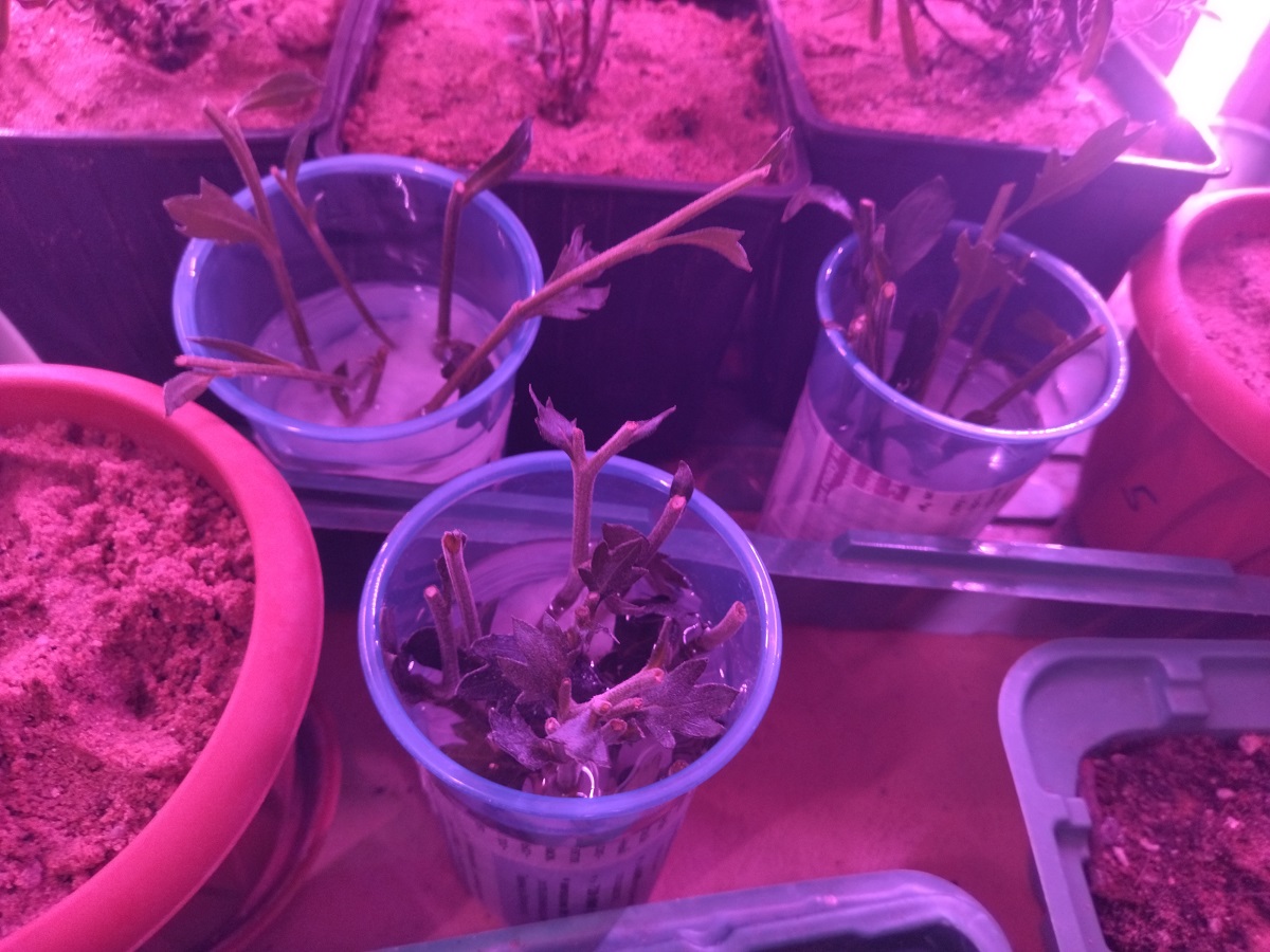 Часть черенков поставил в воду в домашнем парнике с подсветкой.