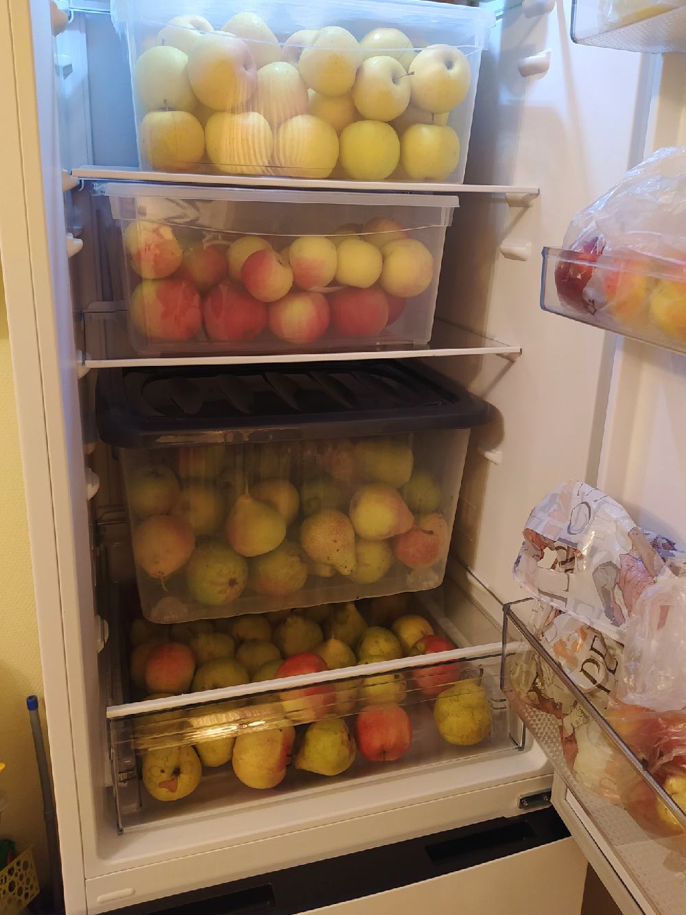 У меня в погребе температура выше, чем в холодильнике, но и влажность значительно выше, идеальная для хранения яблок и груш.