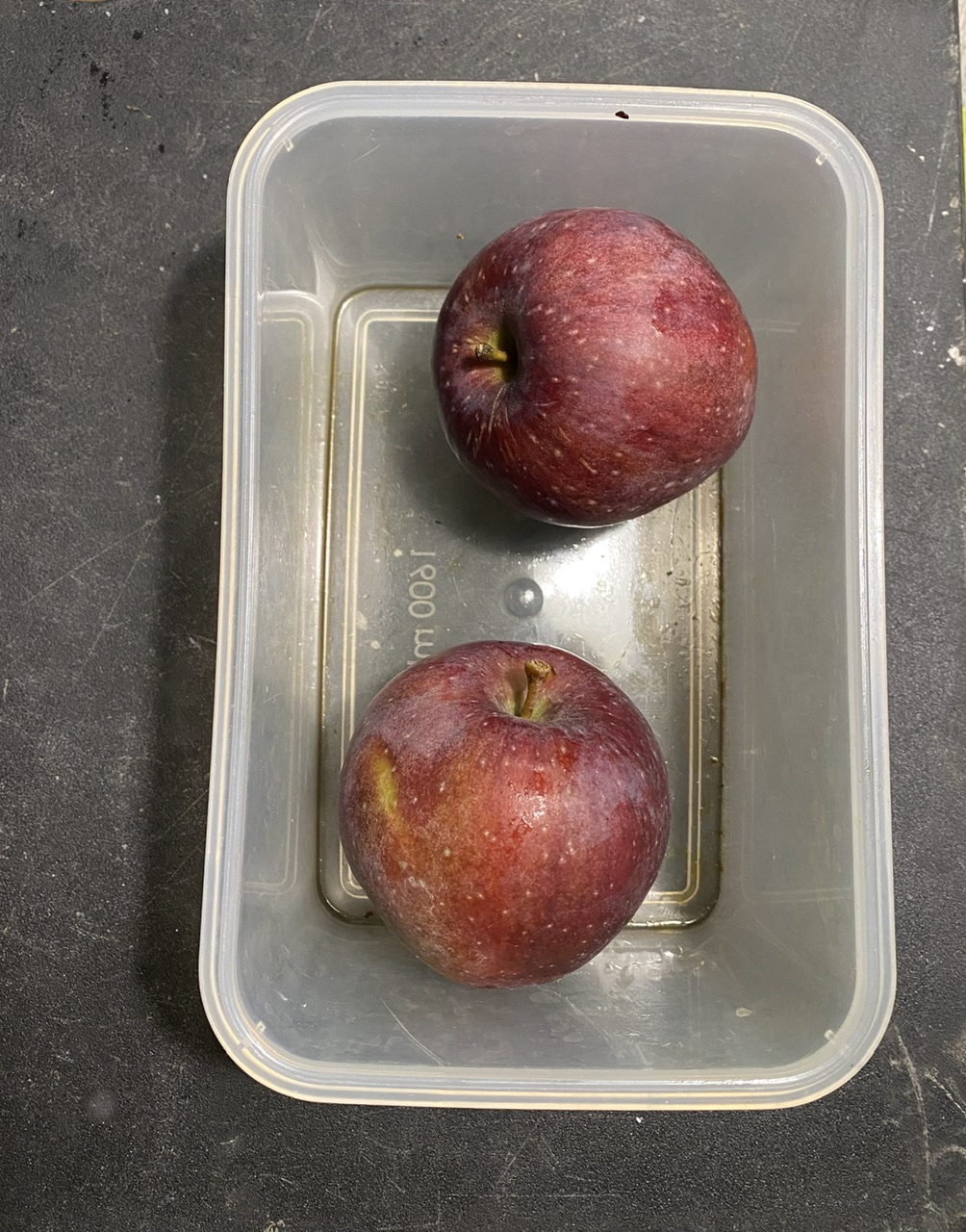 Влажность можно регулировать путем открытия частичного доступа воздуха. (Храним в пакетах с дырками. В полностью закрытых пакетах при длительном хранении создаётся 100%влажность, яблоки мокрые, что не очень хорошо. Но всё-таки лучше, чем повышение температуры).