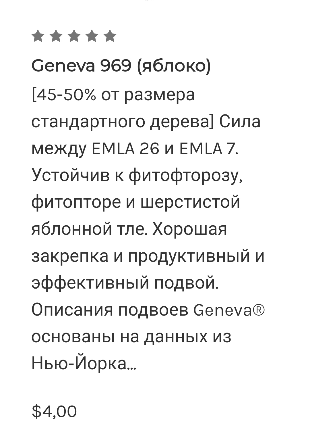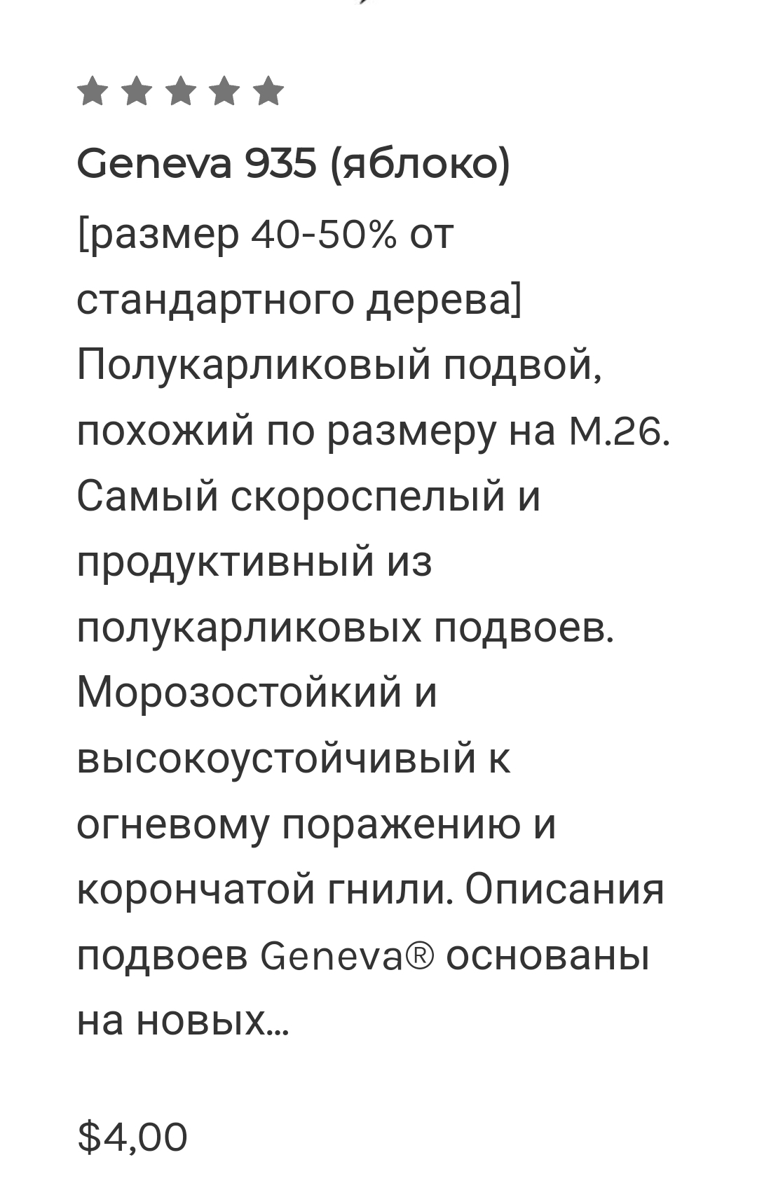 Я жду появления в продаже в США двух новых женевских подвоев, презентованных Корнеллом в 2022 году и хотел бы сразу взять полный набор 7 видов по 2 штуки. Ну, пока они не продаются, видимо на размножении, мы саженцы новых сортов яблони и груши привезём.