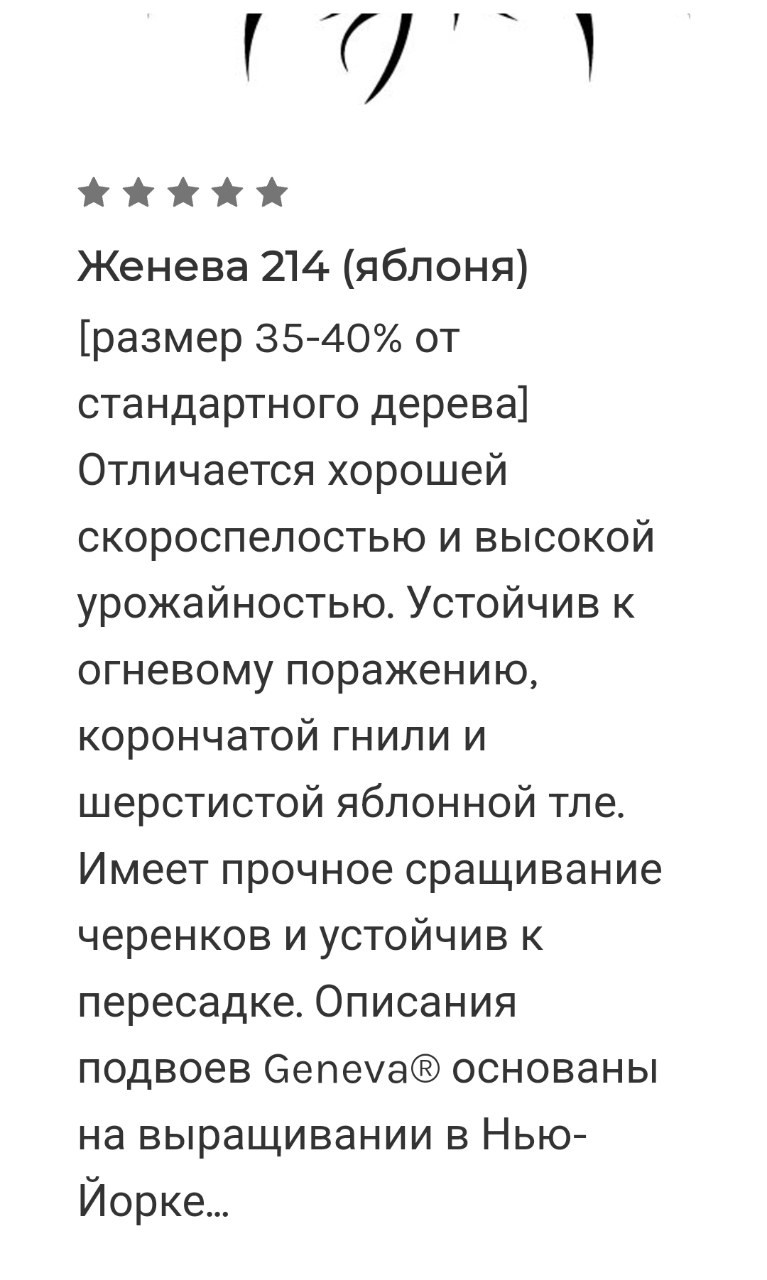 Саженцы на подвое Genevа по цене дороже остальных. Их количество и доступность на рынке ограничены. Они также требуют лицензирования. Однако несмотря ни на что, по нашему мнению, это все окупается значительно более высокой урожайностью уже в первые годы, подтверждённой нашим исследованием.